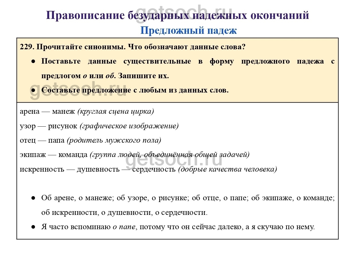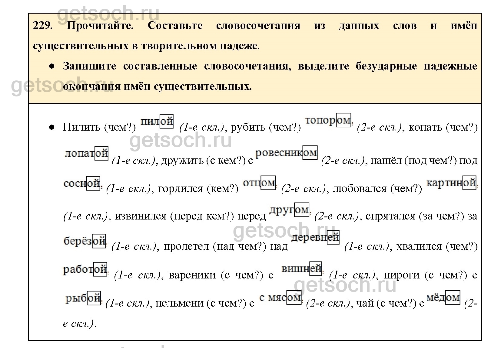 Рассмотрим ответы на Упражнение 229 из учебника по русскому языку для 4 класса Канакиной