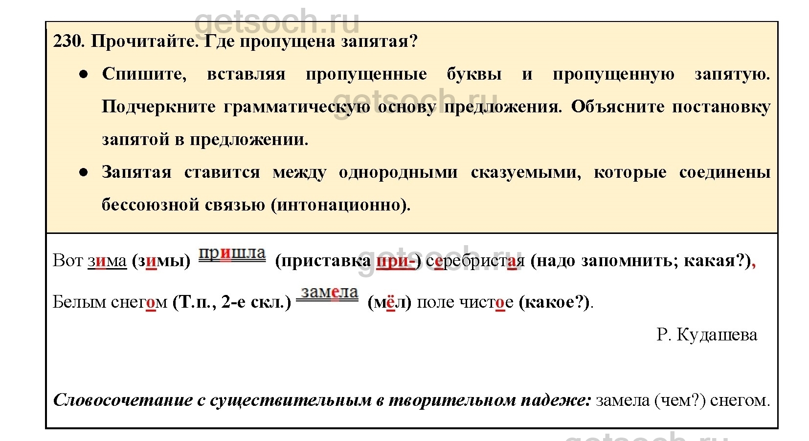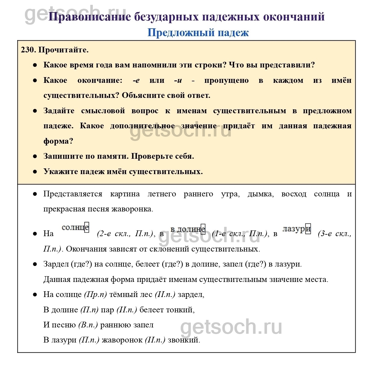 Рассмотрим ответы на Упражнение 230 из учебника по русскому языку для 4 класса Канакиной