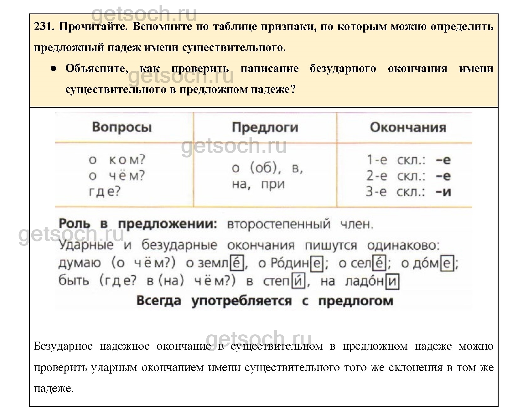 Рассмотрим ответы на Упражнение 231 из учебника по русскому языку для 4 класса Канакиной
