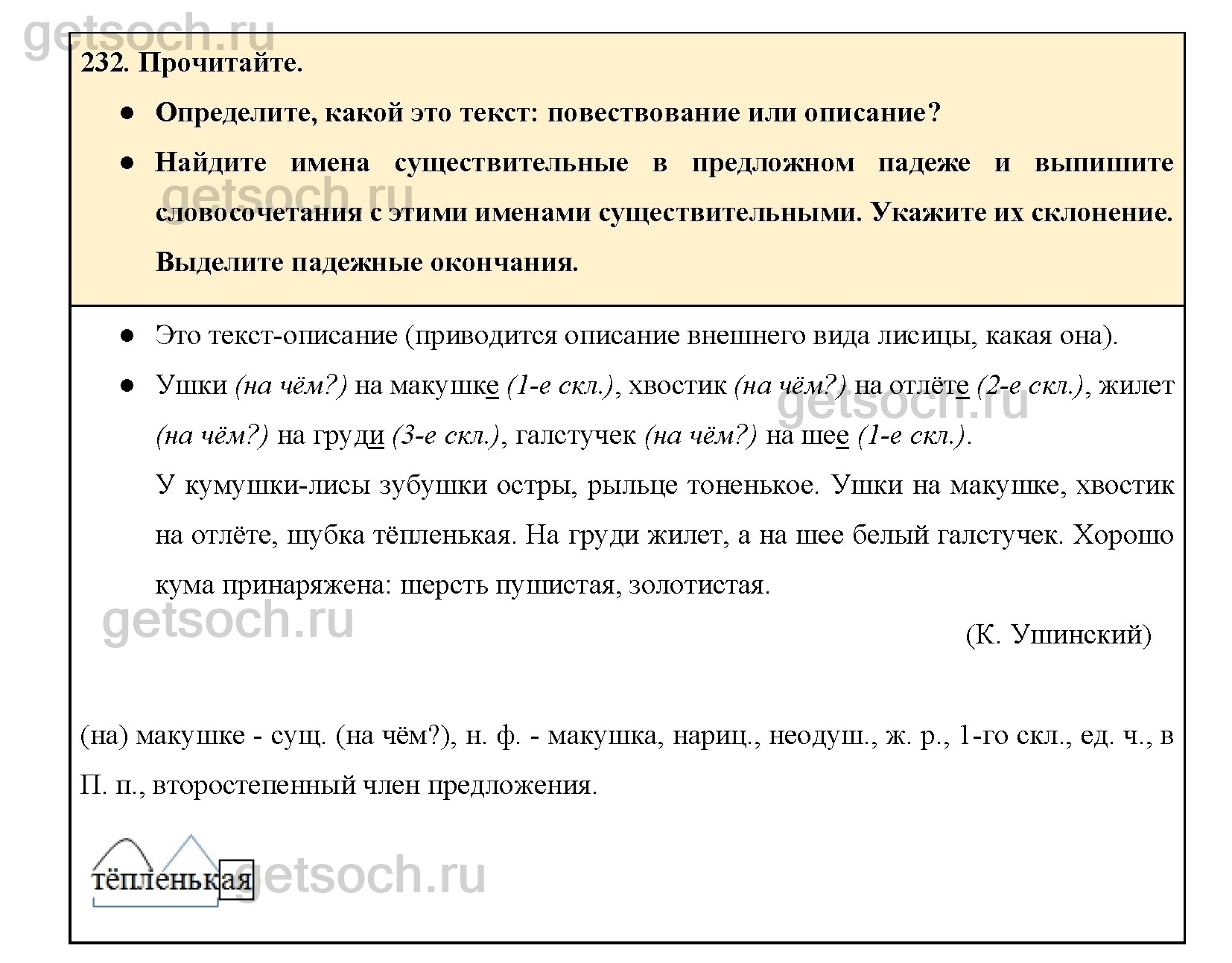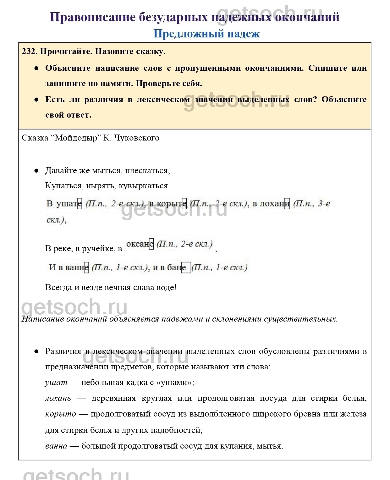 Рассмотрим ответы на Упражнение 232 из учебника по русскому языку для 4 класса Канакиной