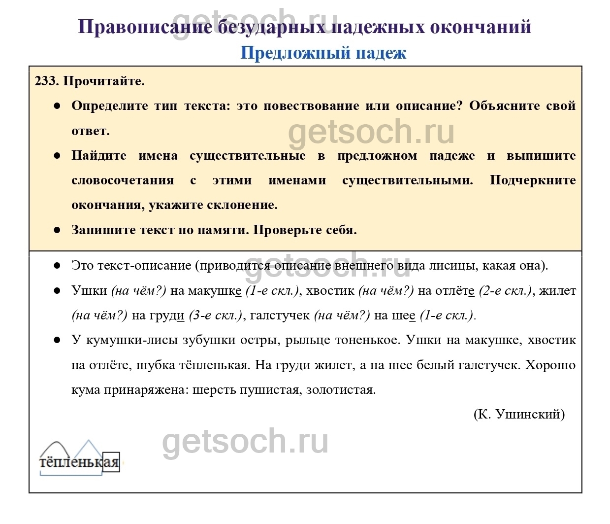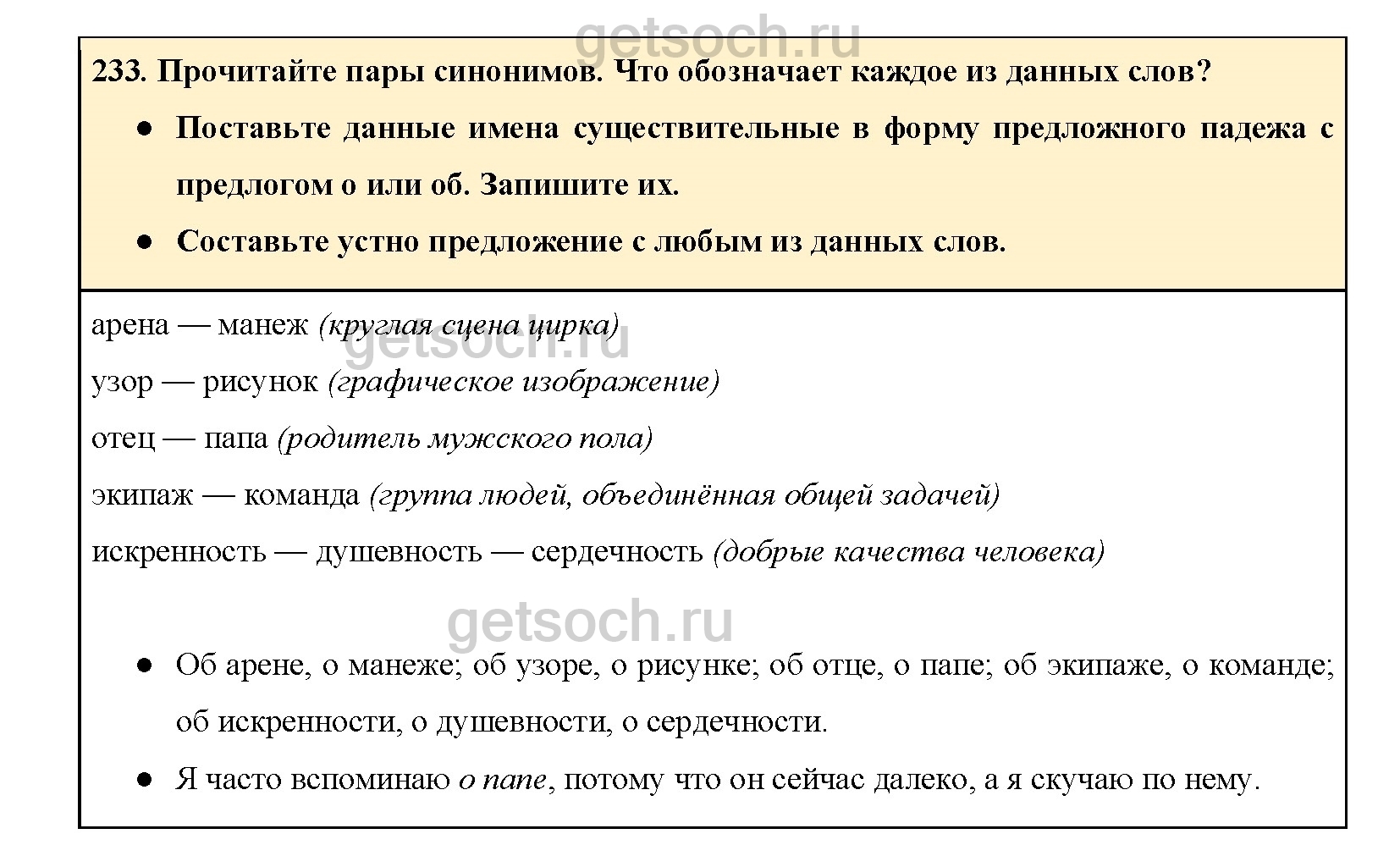 Рассмотрим ответы на Упражнение 233 из учебника по русскому языку для 4 класса Канакиной