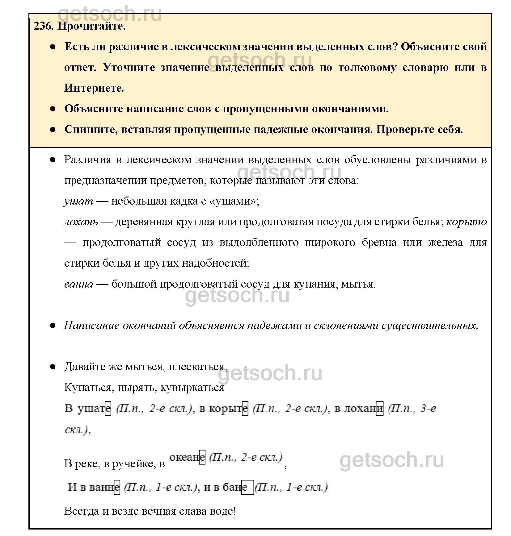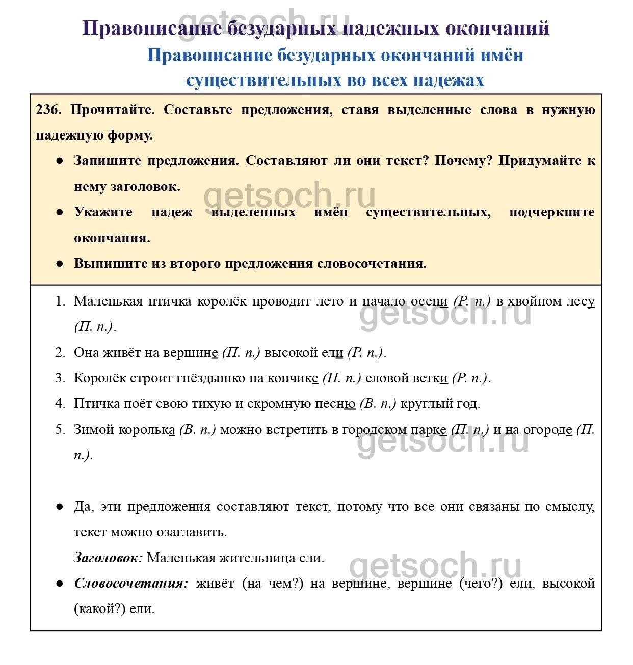 Рассмотрим ответы на Упражнение 236 из учебника по русскому языку для 4 класса Канакиной