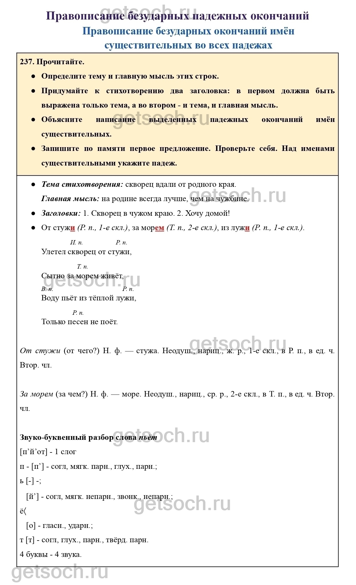 Рассмотрим ответы на Упражнение 237 из учебника по русскому языку для 4 класса Канакиной