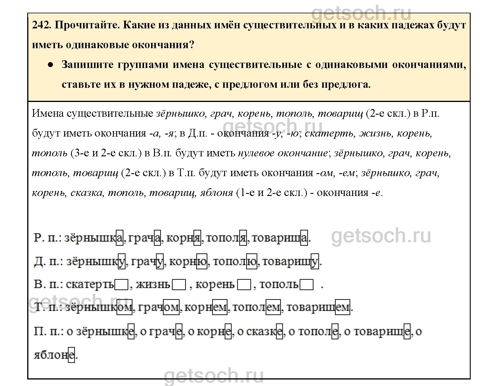 Рассмотрим ответы на Упражнение 242 из учебника по русскому языку для 4 класса Канакиной