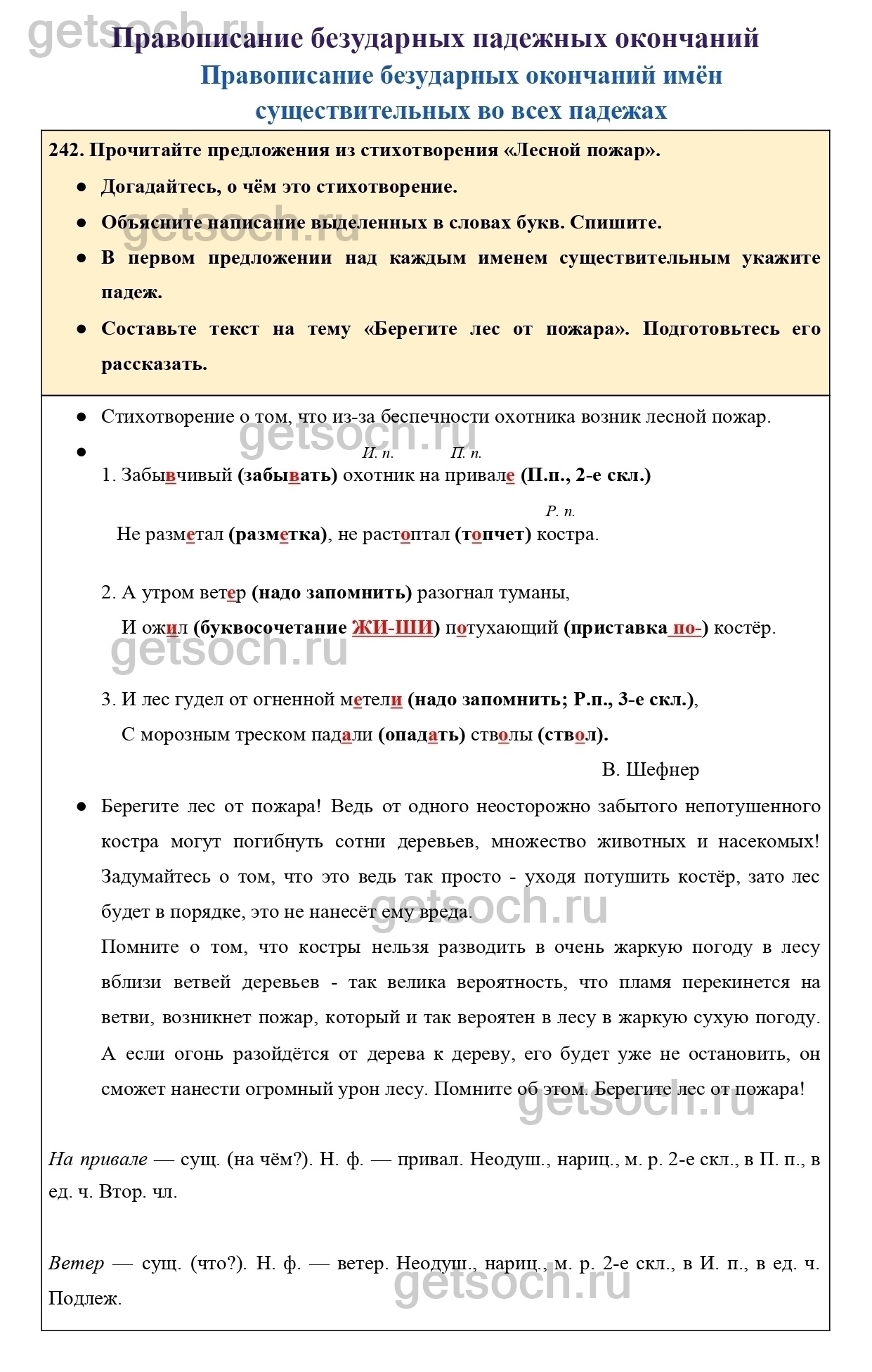 242. Прочитайте предложения из стихотворения «Лесной пожар».