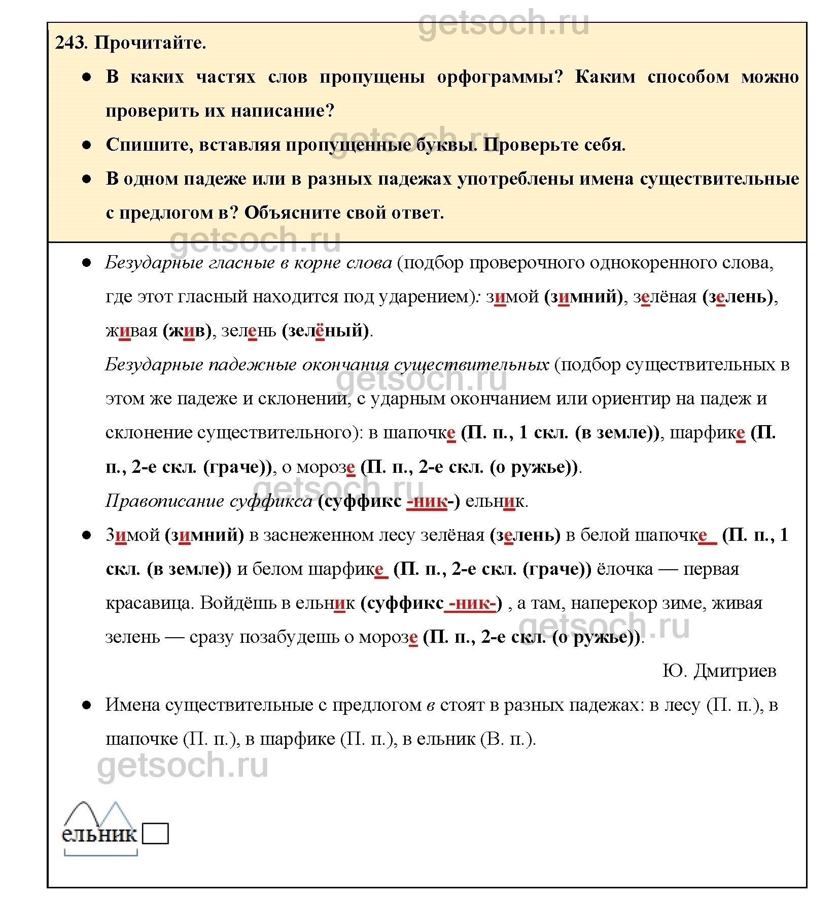 Рассмотрим ответы на Упражнение 243 из учебника по русскому языку для 4 класса Канакиной