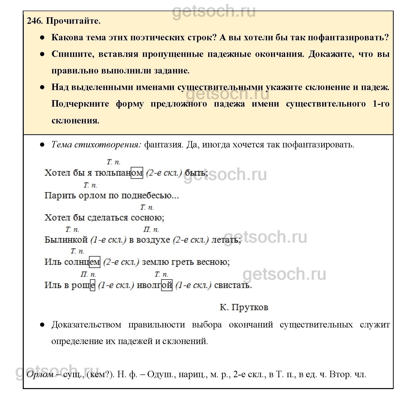 Рассмотрим ответы на Упражнение 246 из учебника по русскому языку для 4 класса Канакиной