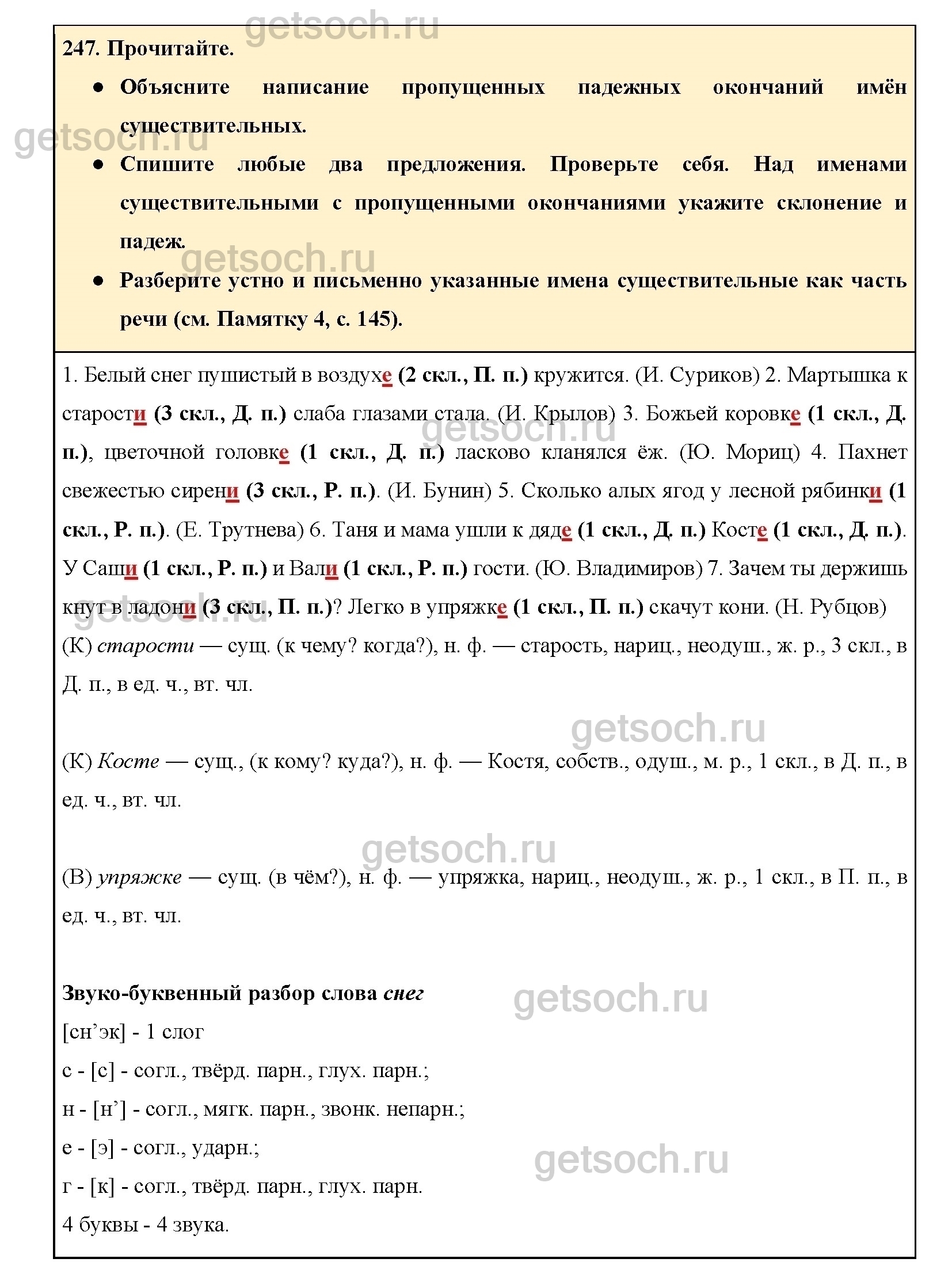 Рассмотрим ответы на Упражнение 247 из учебника по русскому языку для 4 класса Канакиной