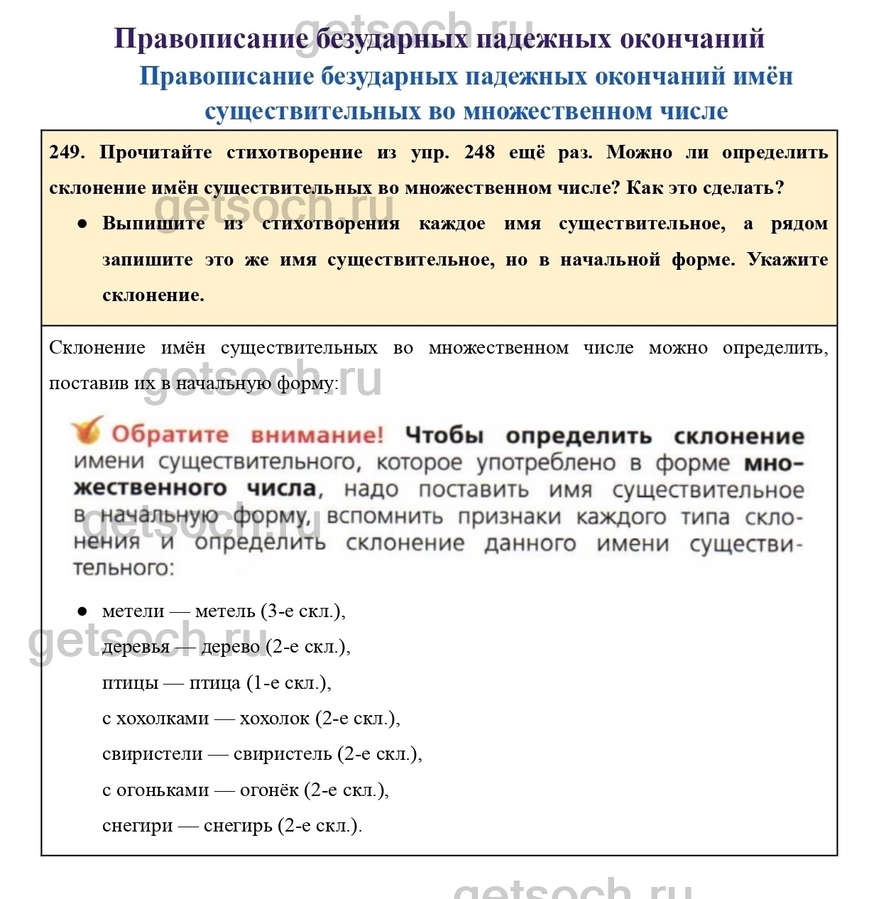 249. Прочитайте стихотворение из упр. 248 ещё раз. Можно ли определить склонение имён существительных во множественном числе? Как это сделать?
