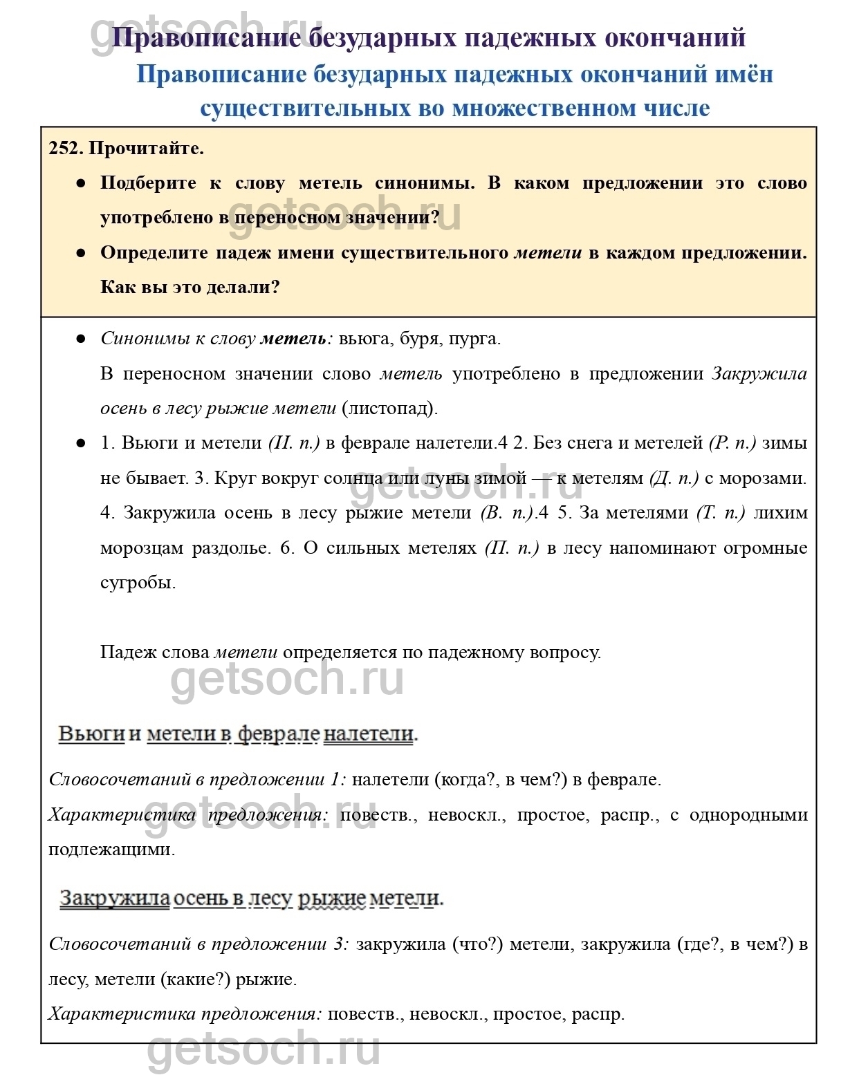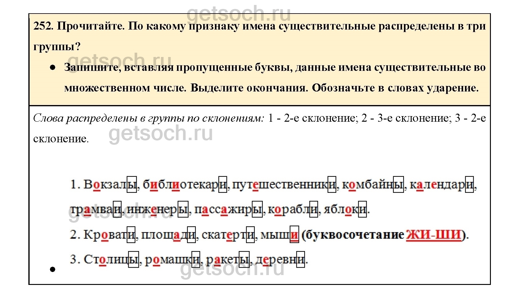 Рассмотрим ответы на Упражнение 252 из учебника по русскому языку для 4 класса Канакиной