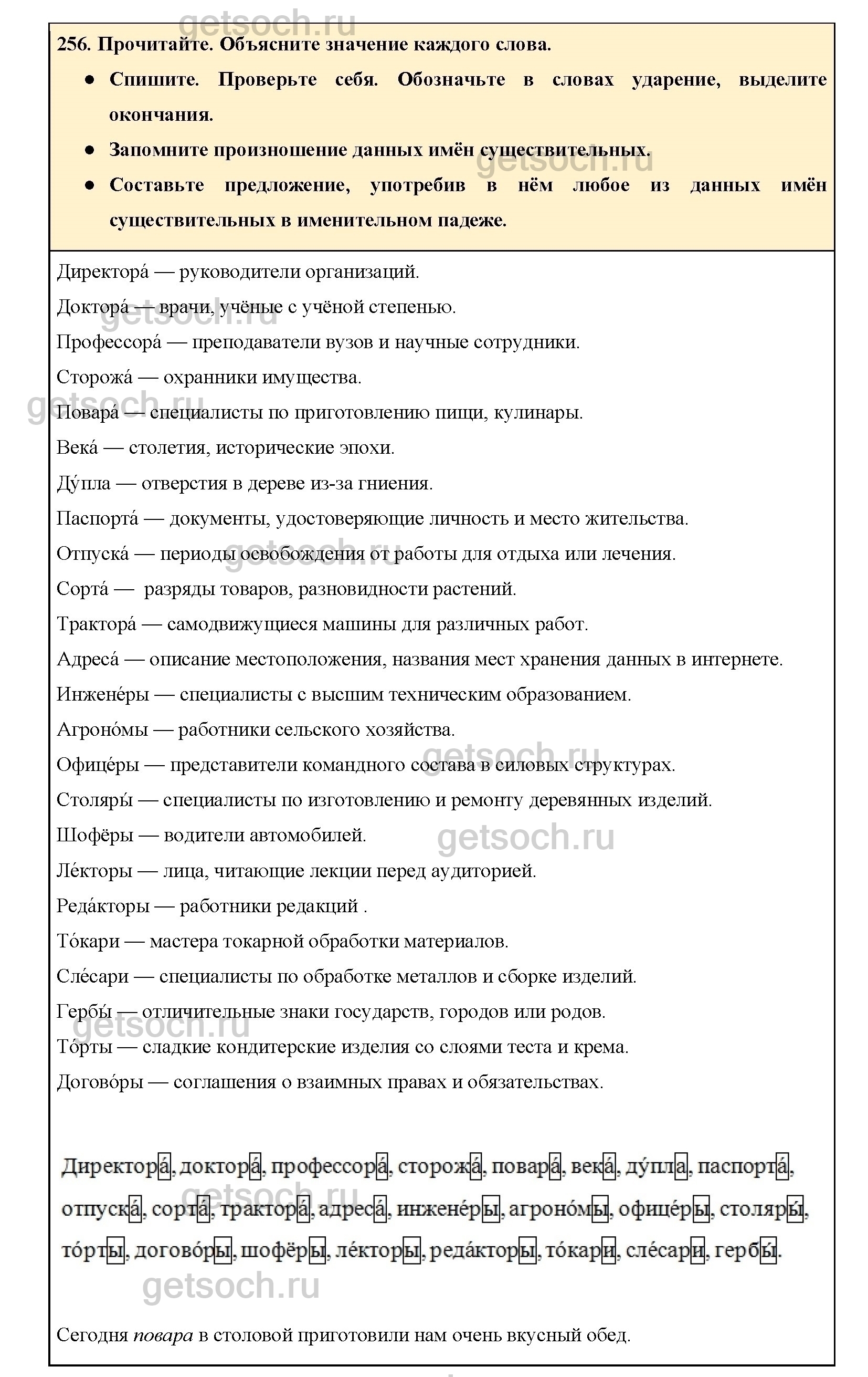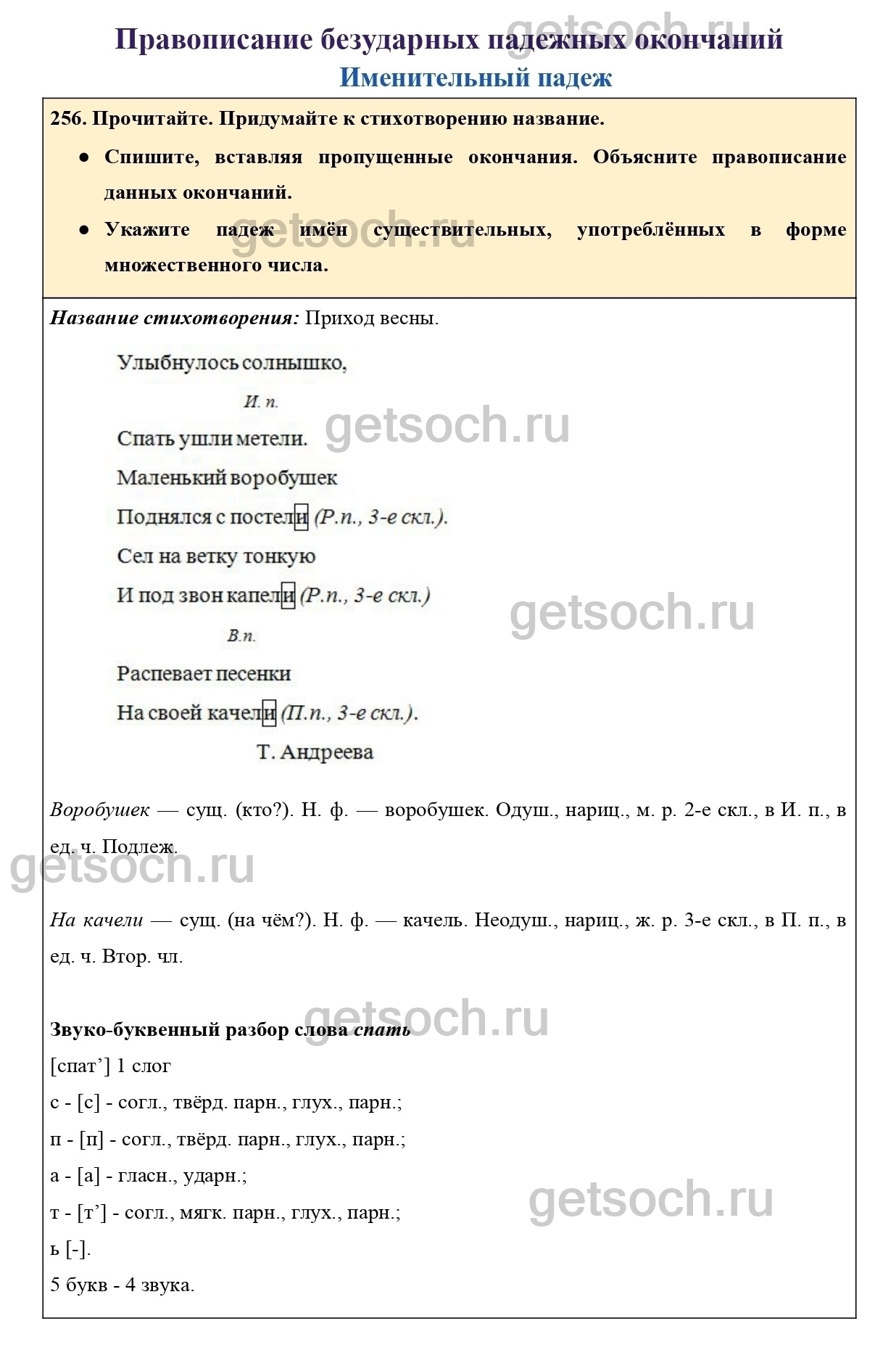 Рассмотрим ответы на Упражнение 256 из учебника по русскому языку для 4 класса Канакиной