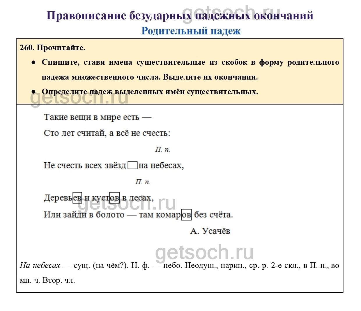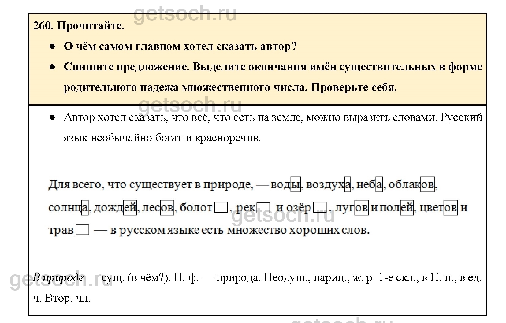 Рассмотрим ответы на Упражнение 260 из учебника по русскому языку для 4 класса Канакиной