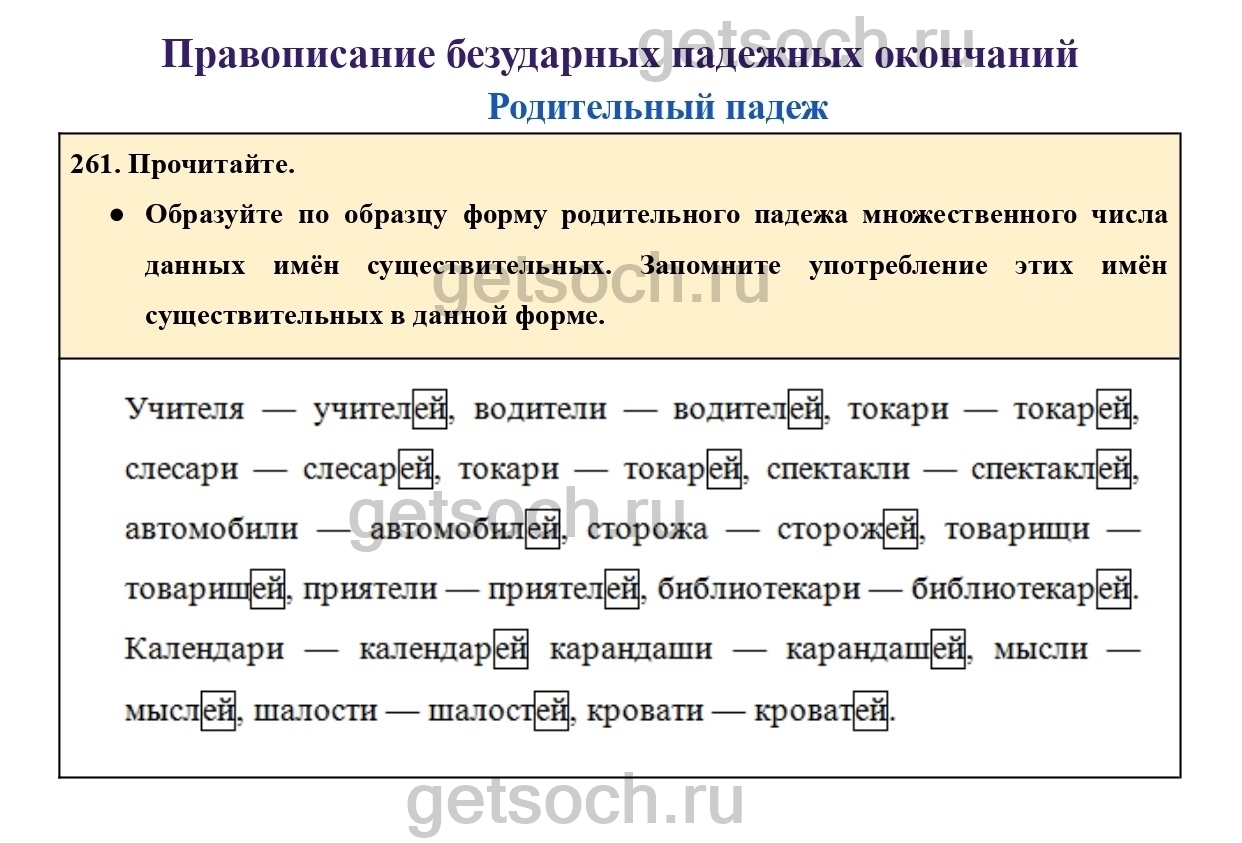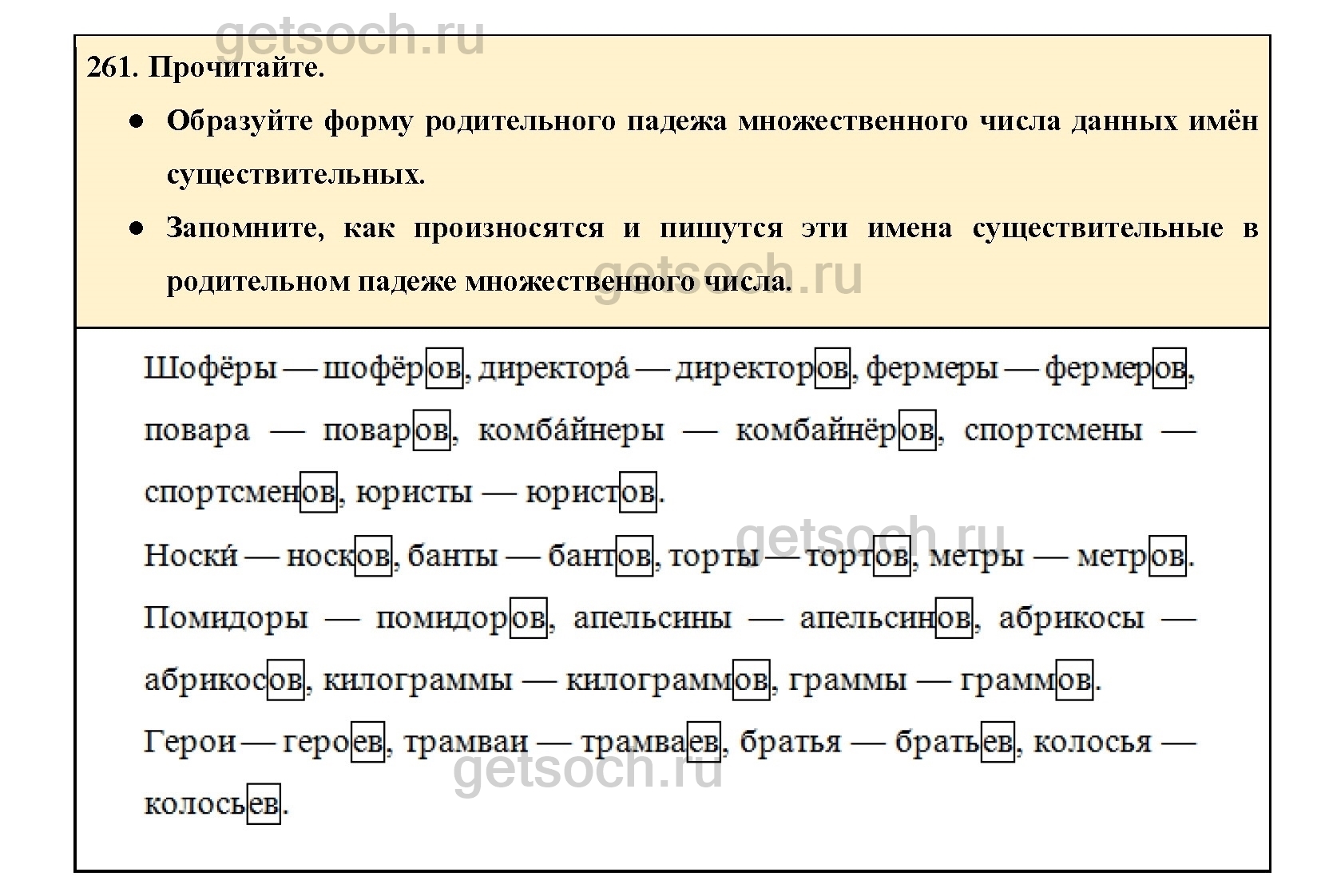 Рассмотрим ответы на Упражнение 261 из учебника по русскому языку для 4 класса Канакиной