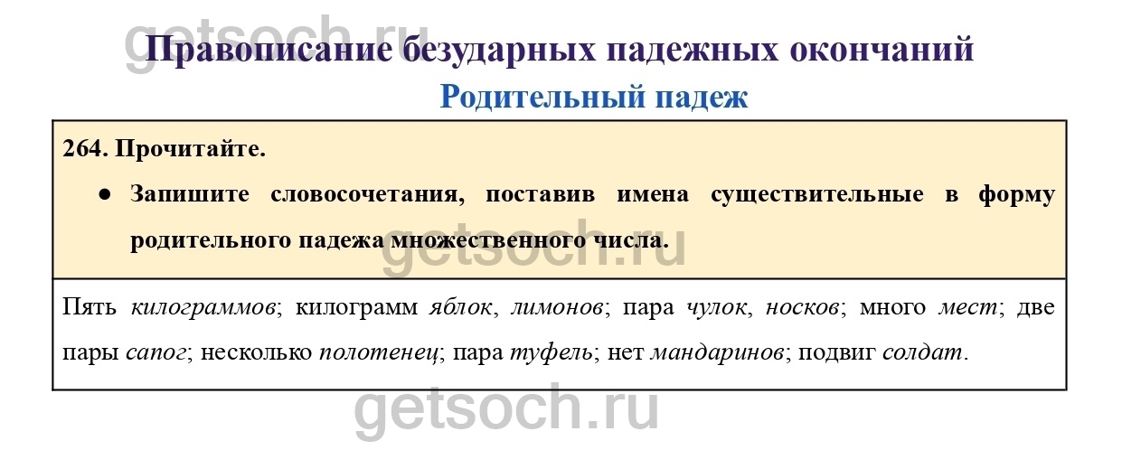 Рассмотрим ответы на Упражнение 264 из учебника по русскому языку для 4 класса Канакиной