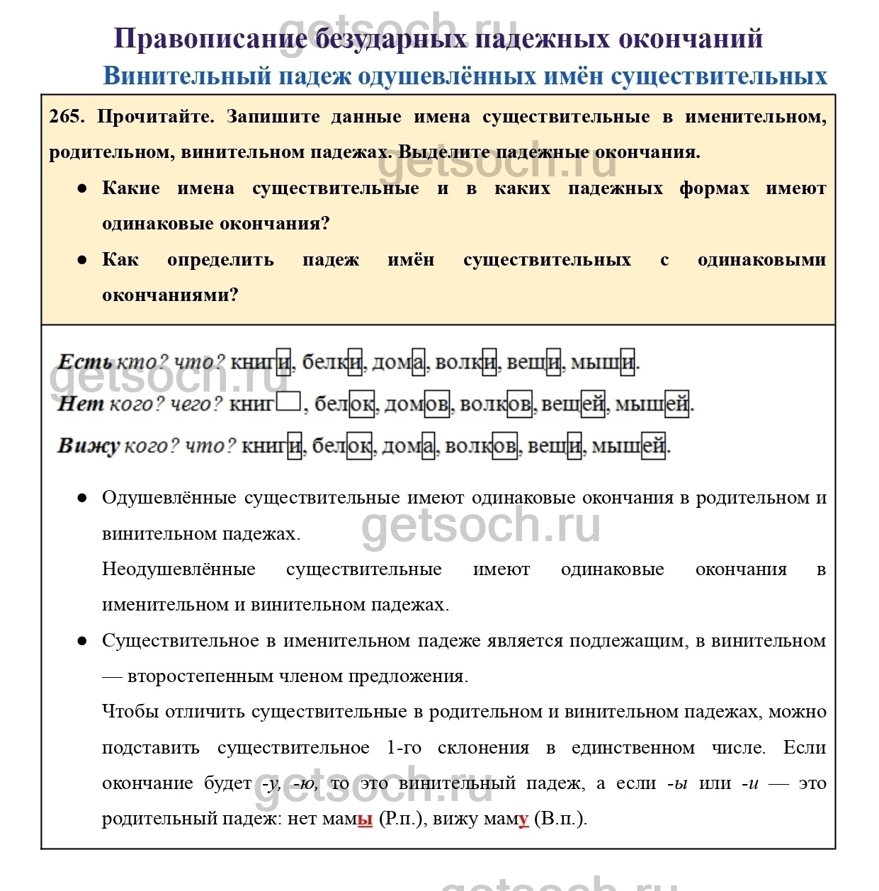 Рассмотрим ответы на Упражнение 265 из учебника по русскому языку для 4 класса Канакиной