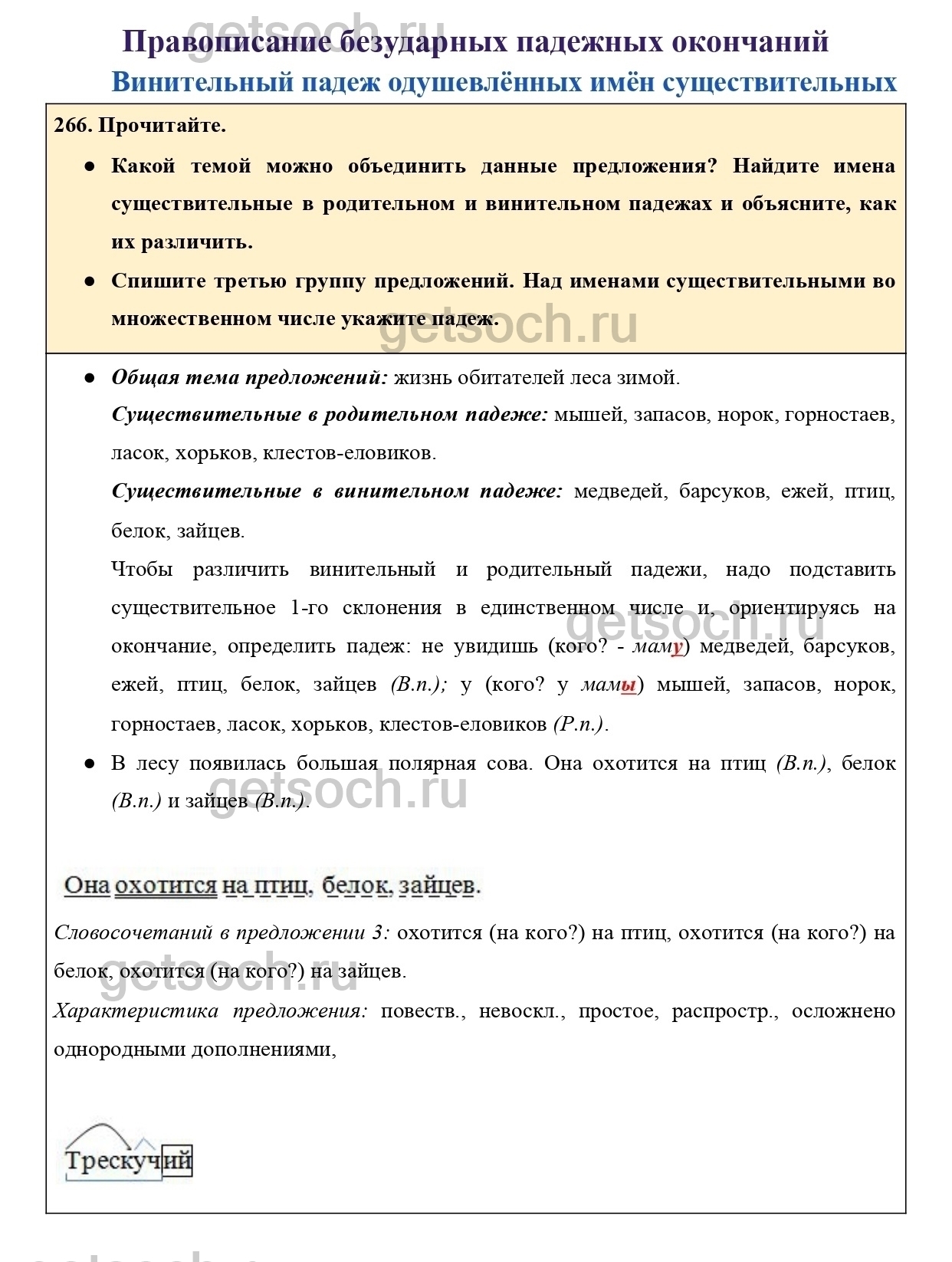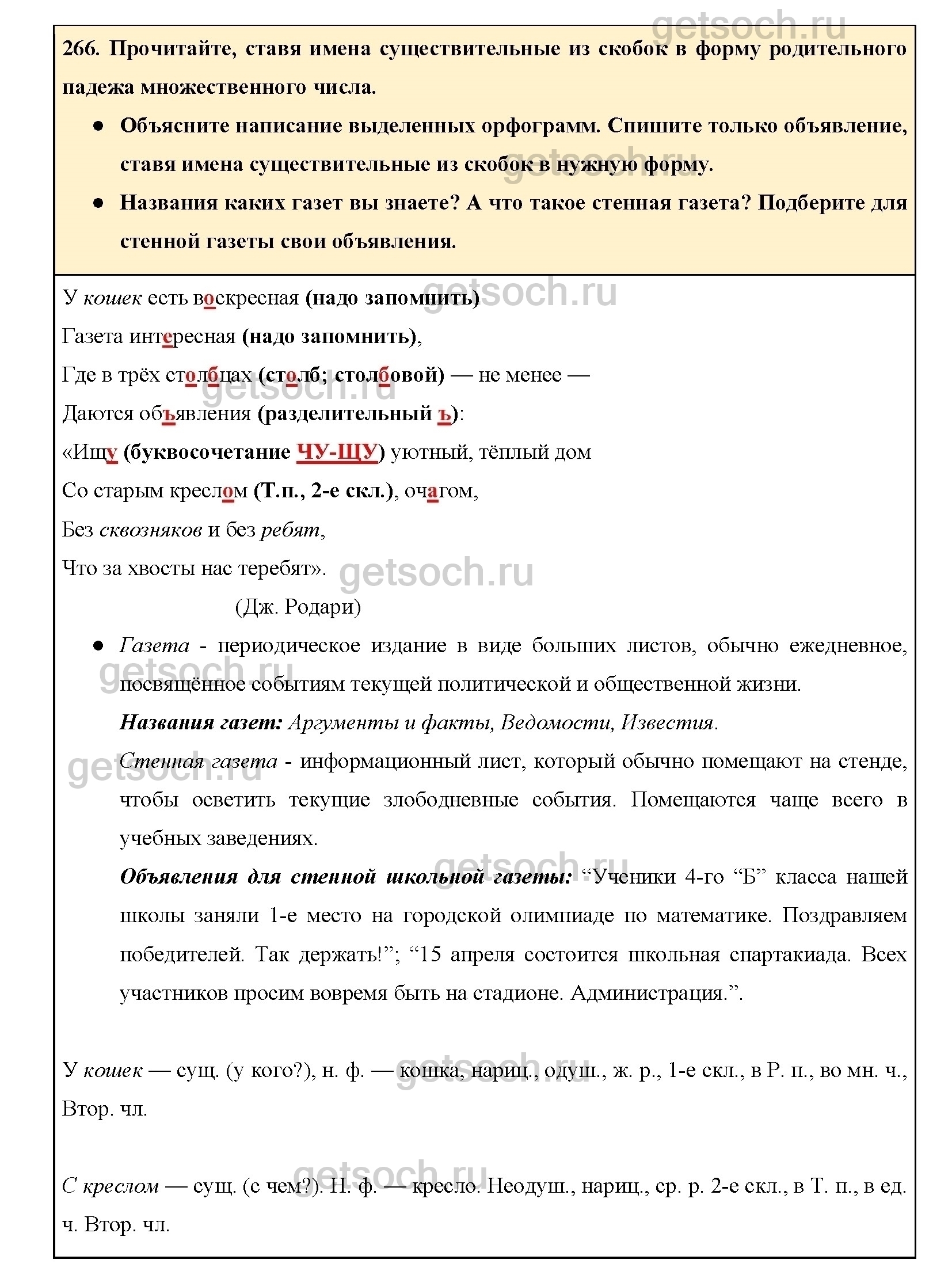 Рассмотрим ответы на Упражнение 266 из учебника по русскому языку для 4 класса Канакиной