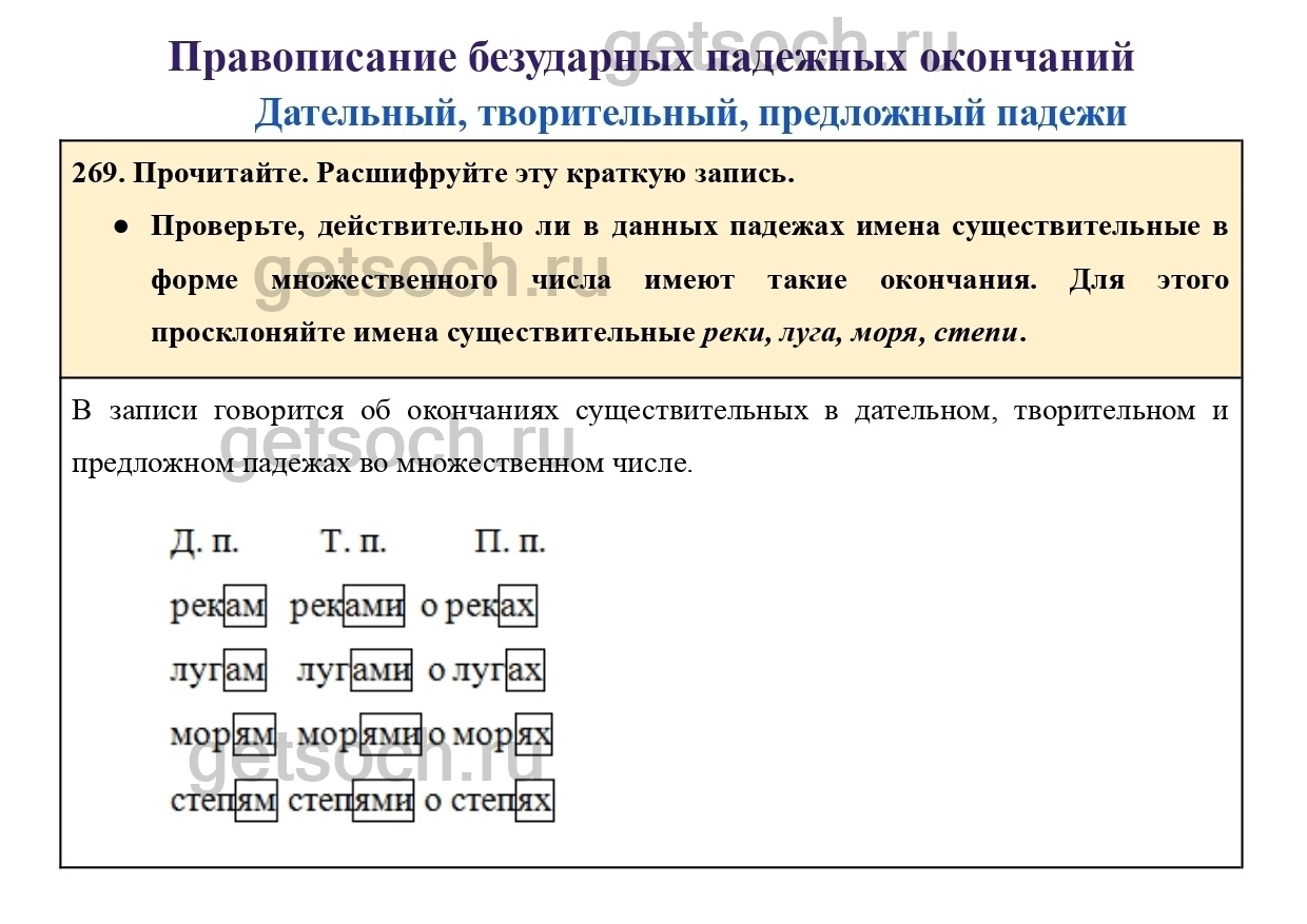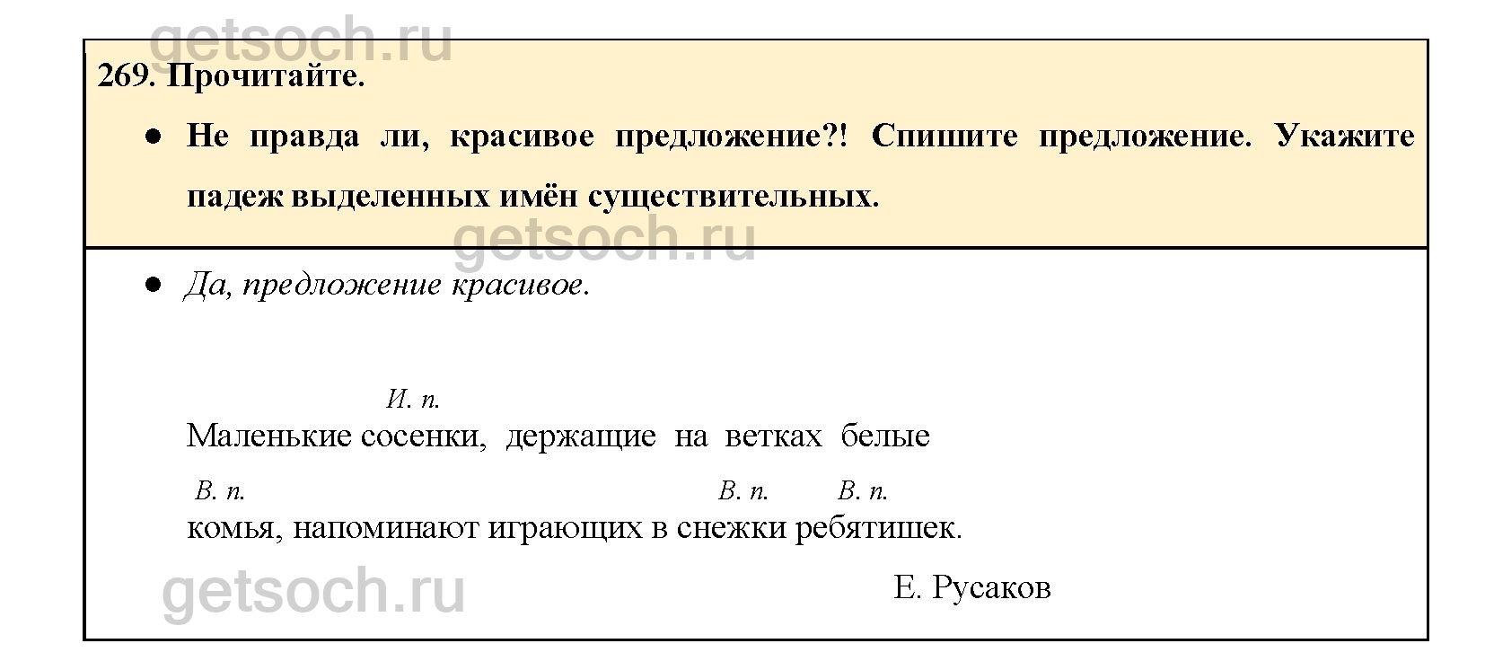 Рассмотрим ответы на Упражнение 269 из учебника по русскому языку для 4 класса Канакиной