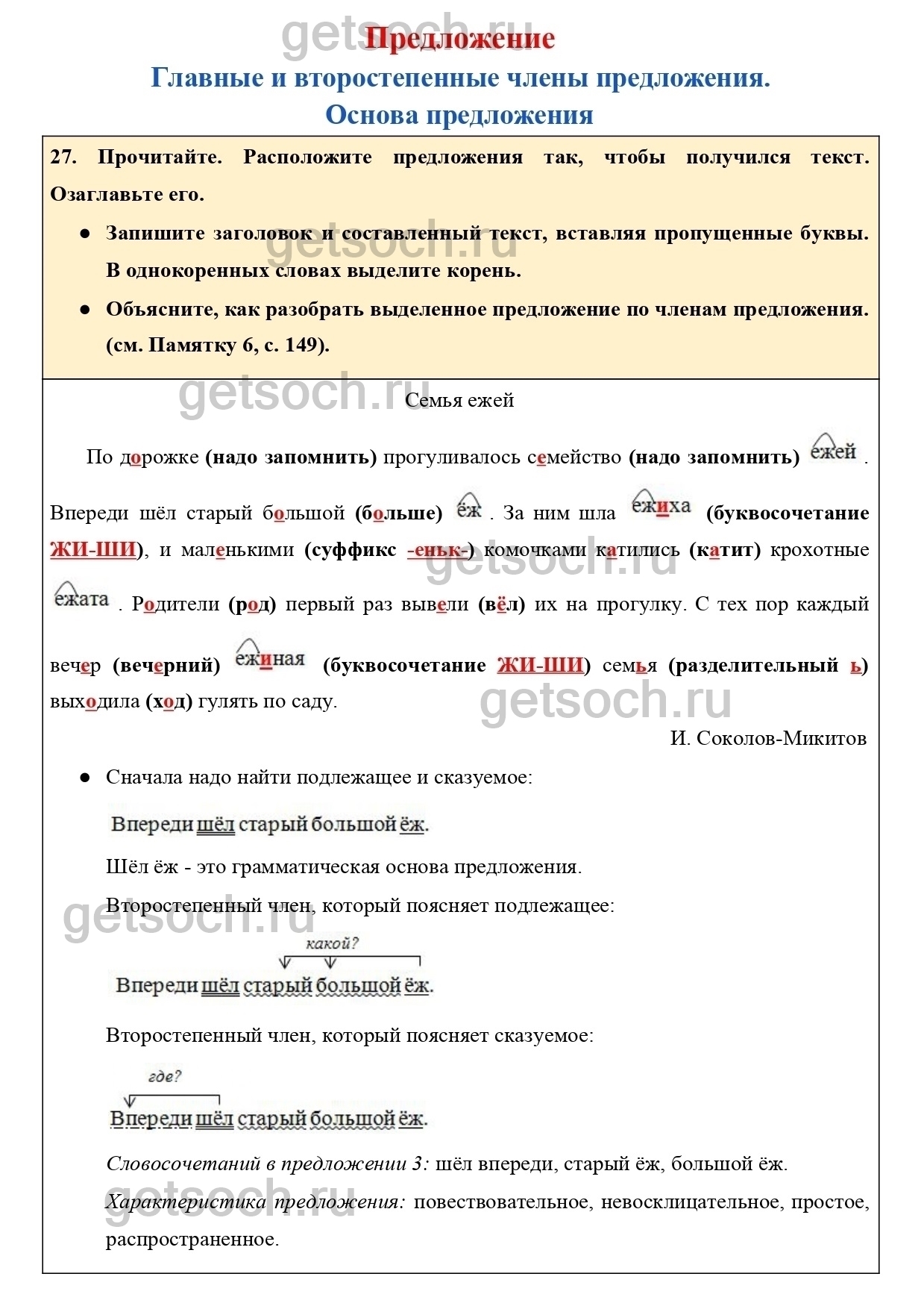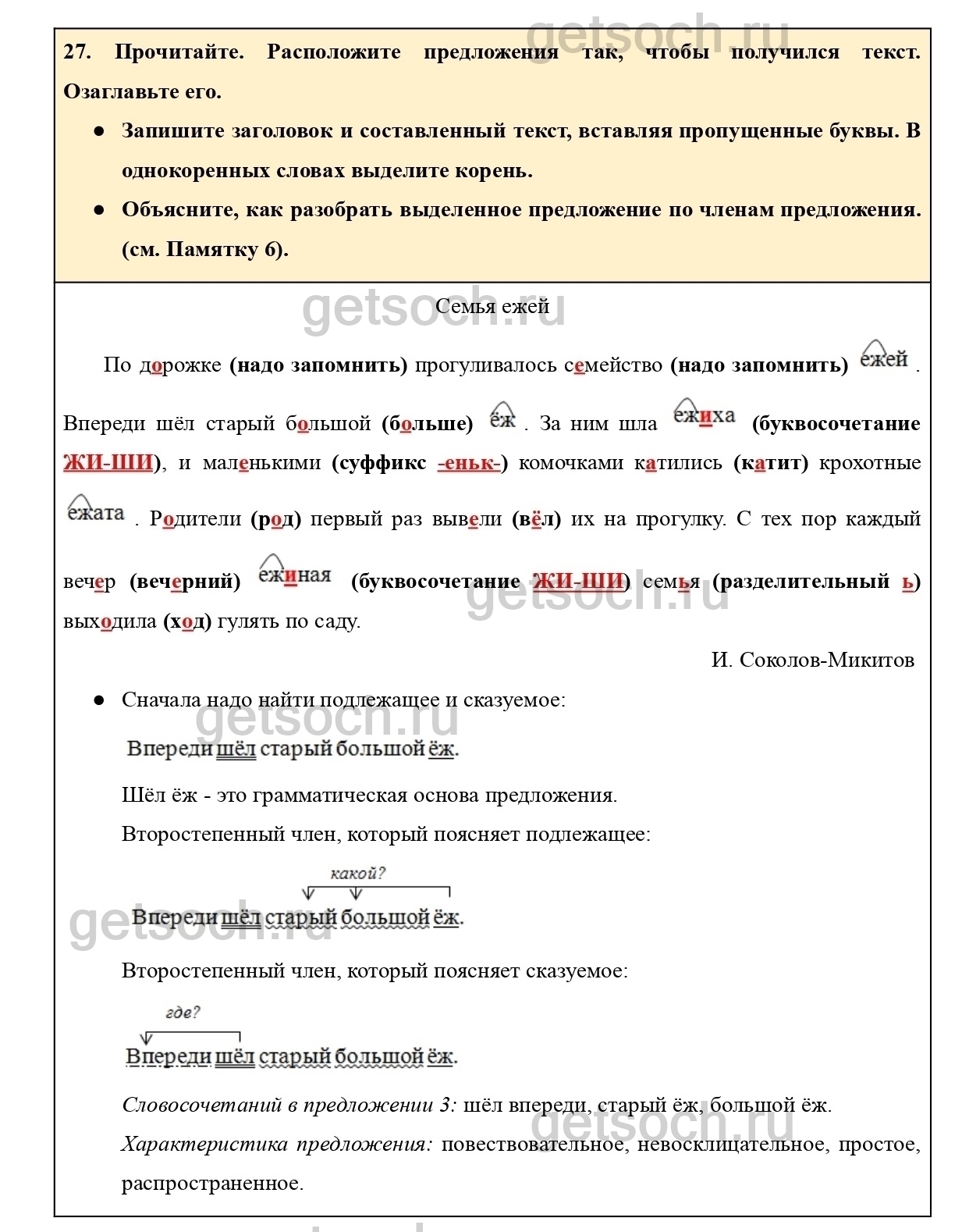 Рассмотрим ответы на Упражнение 27 из учебника по русскому языку для 4 класса Канакиной