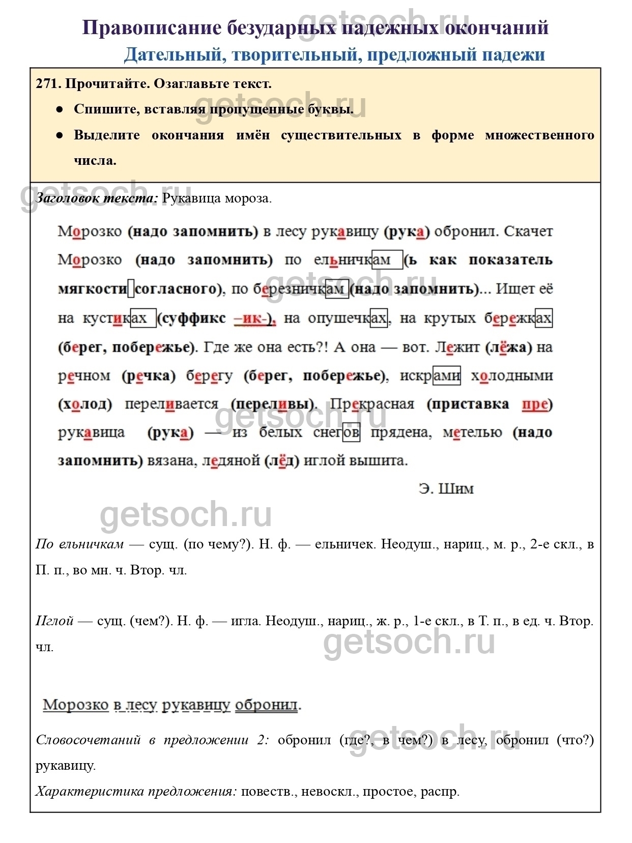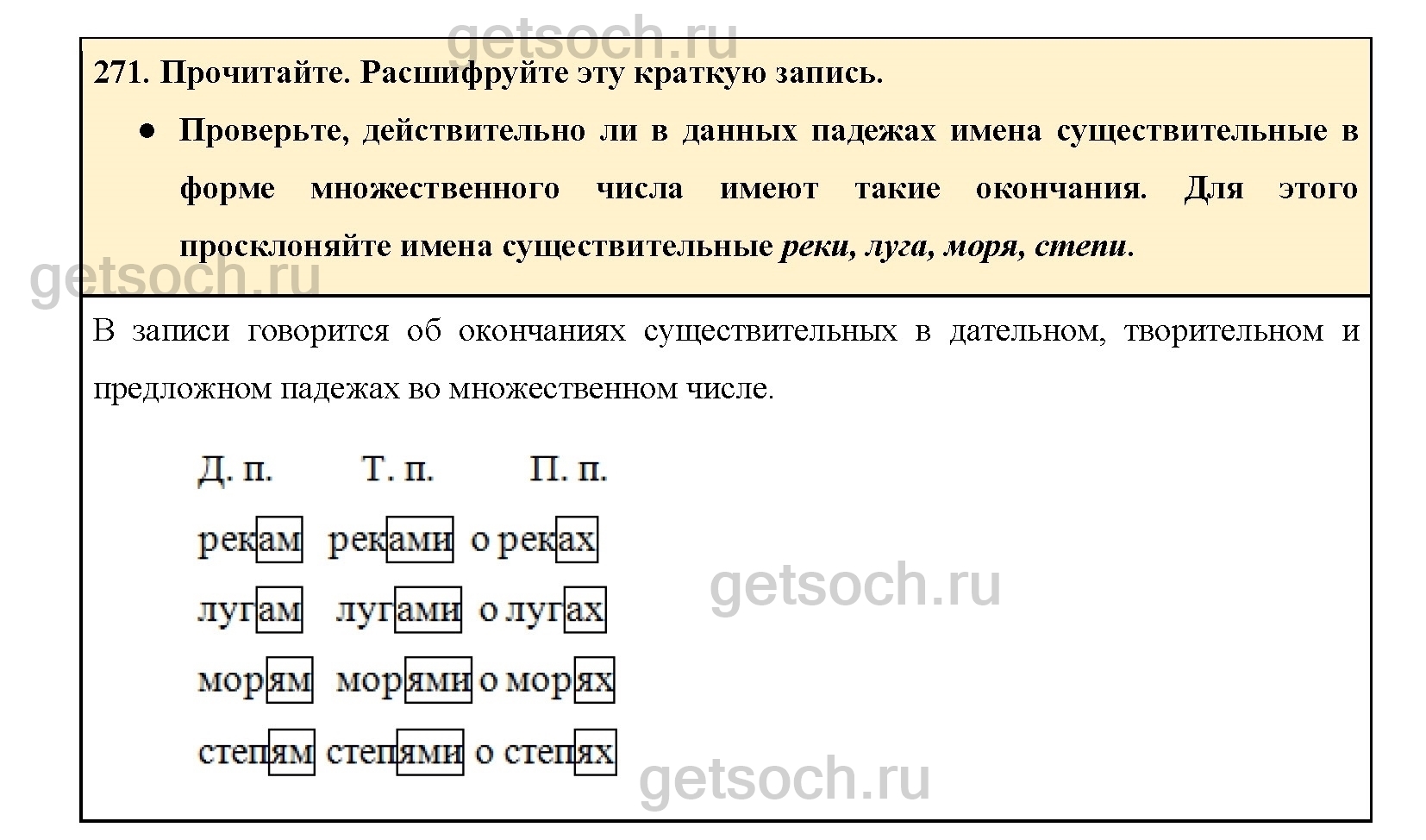 Рассмотрим ответы на Упражнение 271 из учебника по русскому языку для 4 класса Канакиной
