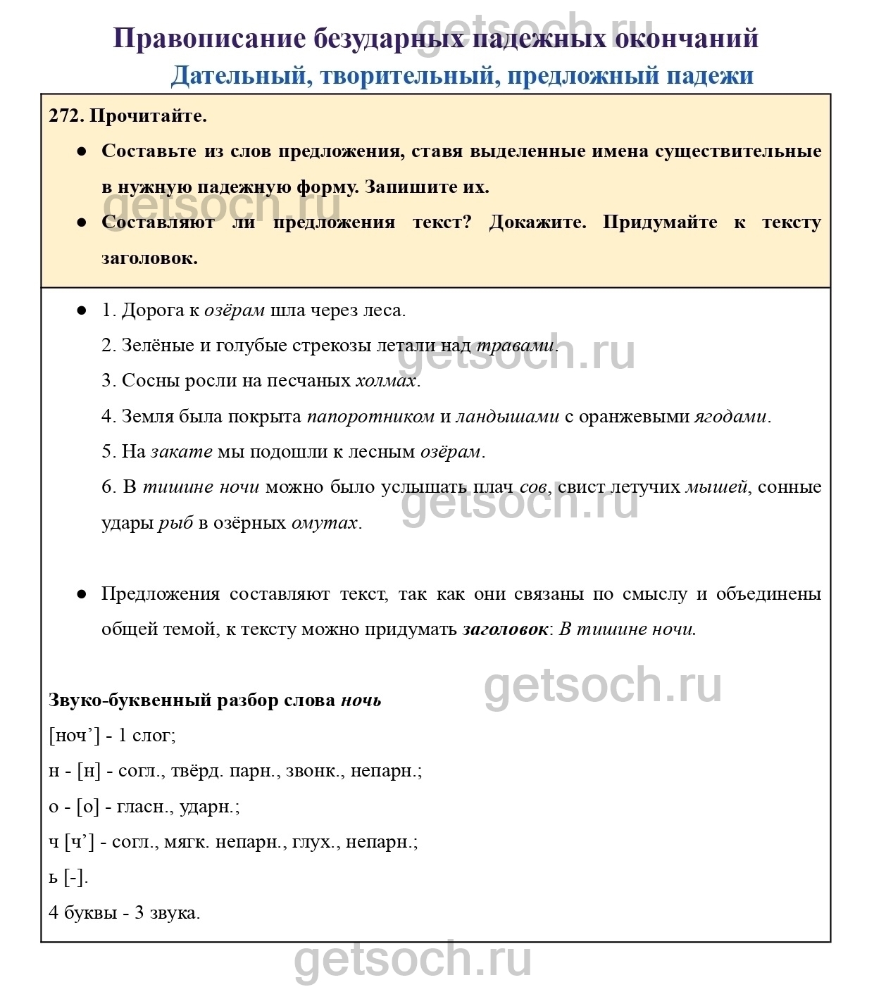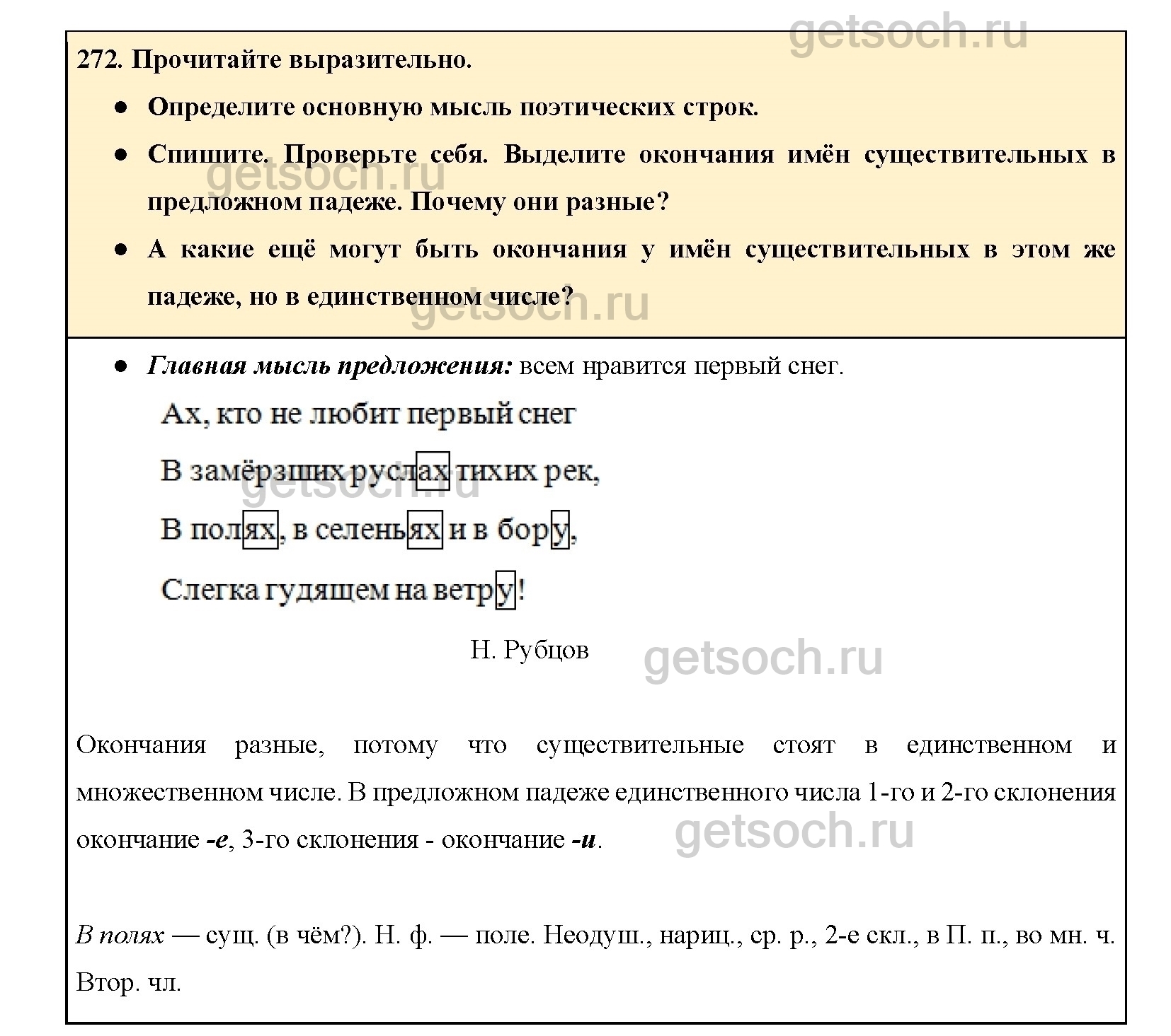 Рассмотрим ответы на Упражнение 272 из учебника по русскому языку для 4 класса Канакиной
