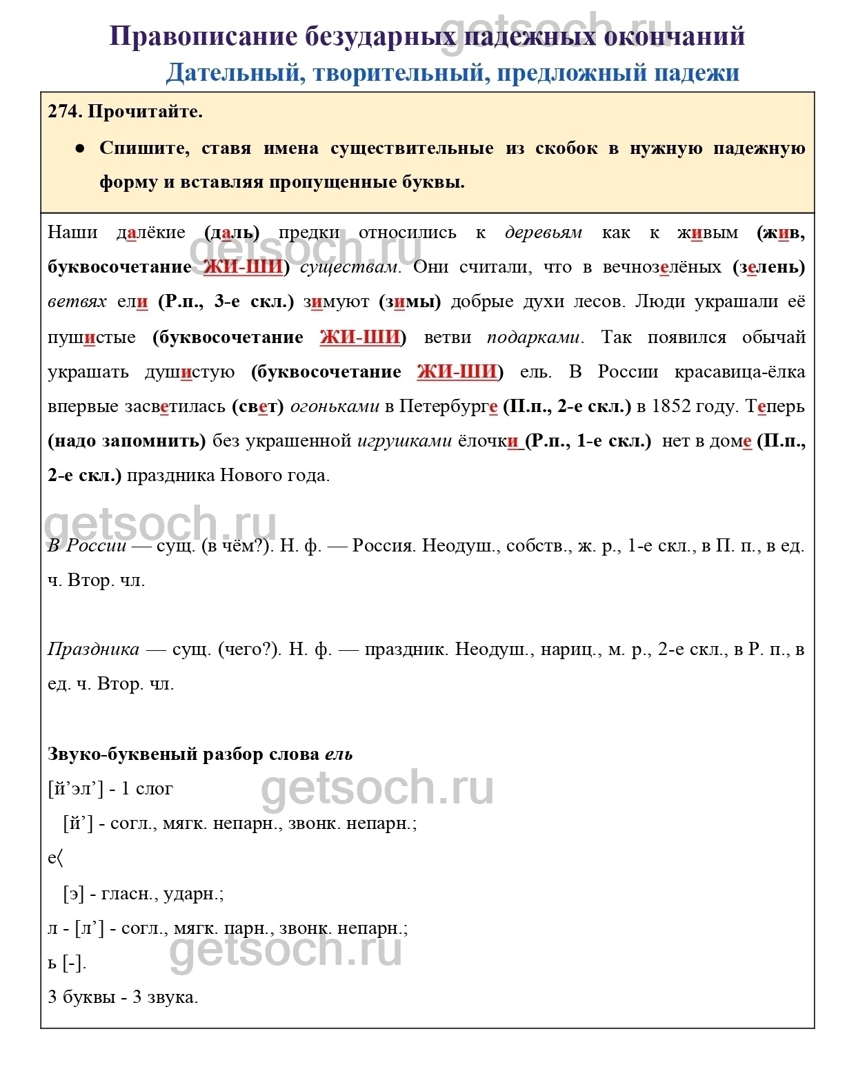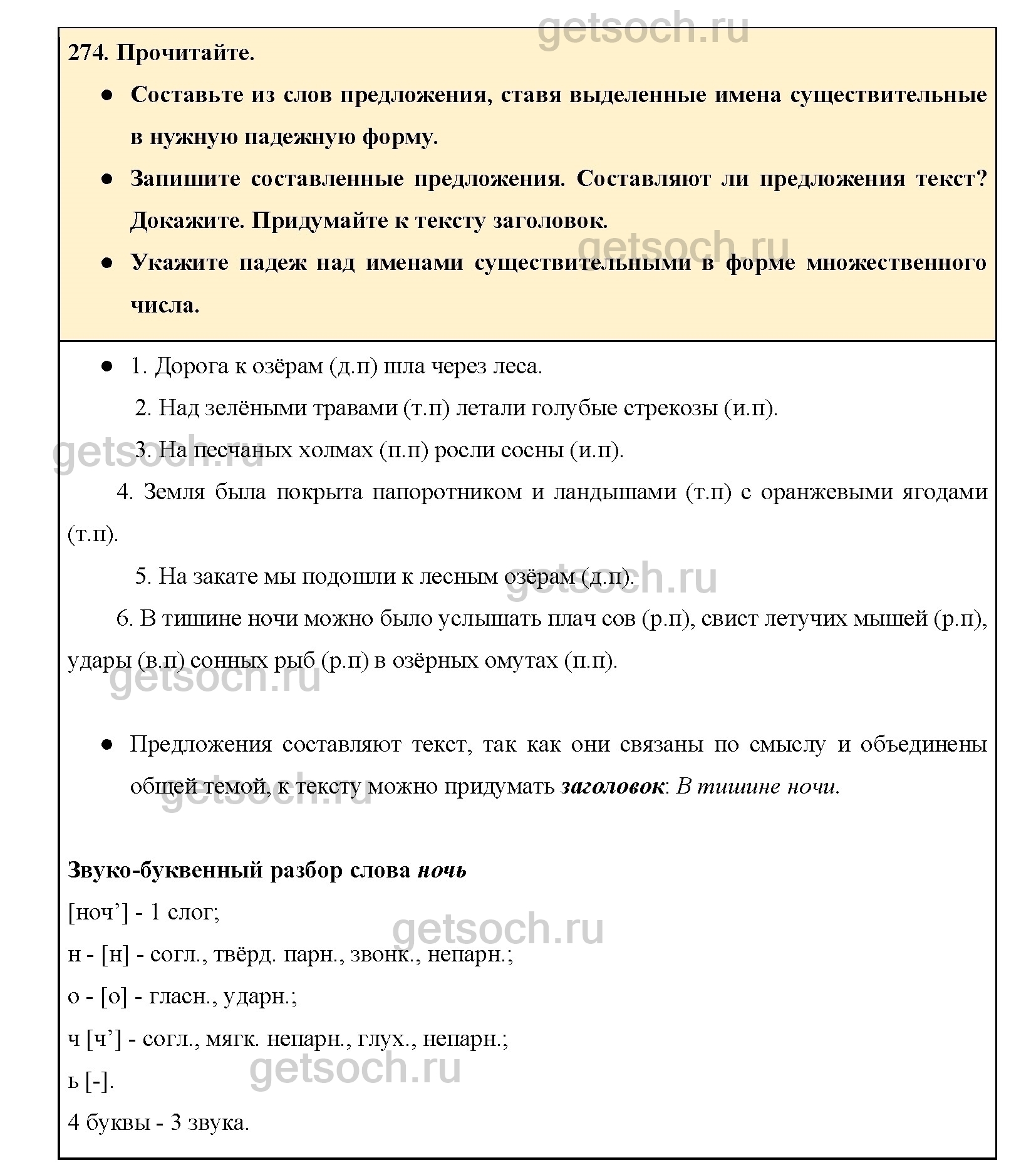 Рассмотрим ответы на Упражнение 274 из учебника по русскому языку для 4 класса Канакиной