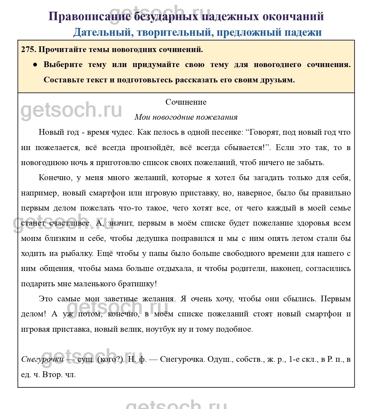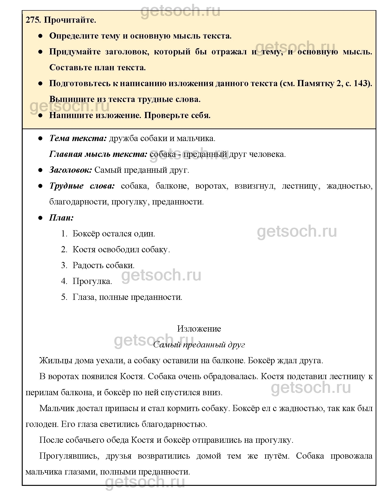 Рассмотрим ответы на Упражнение 275 из учебника по русскому языку для 4 класса Канакиной