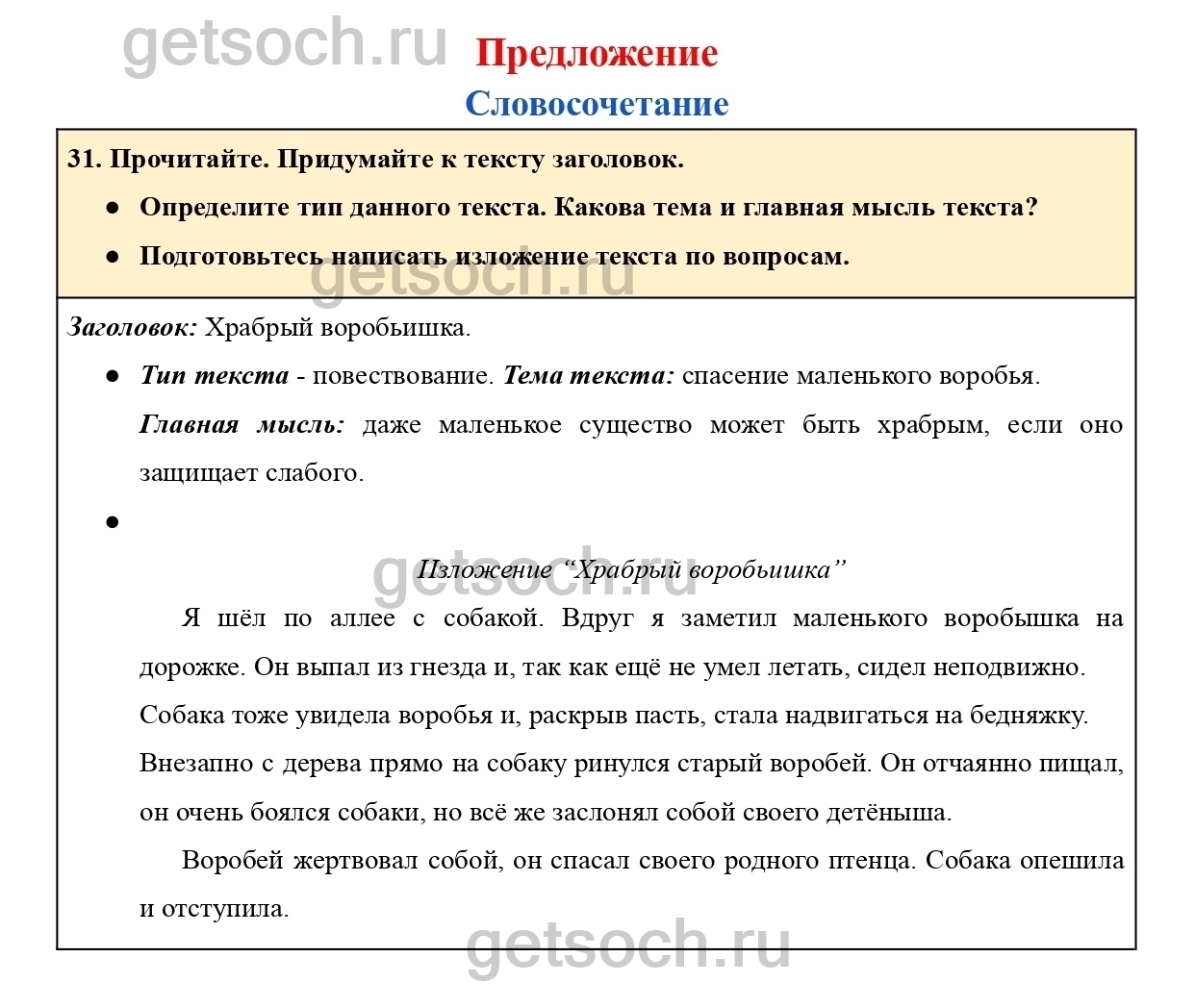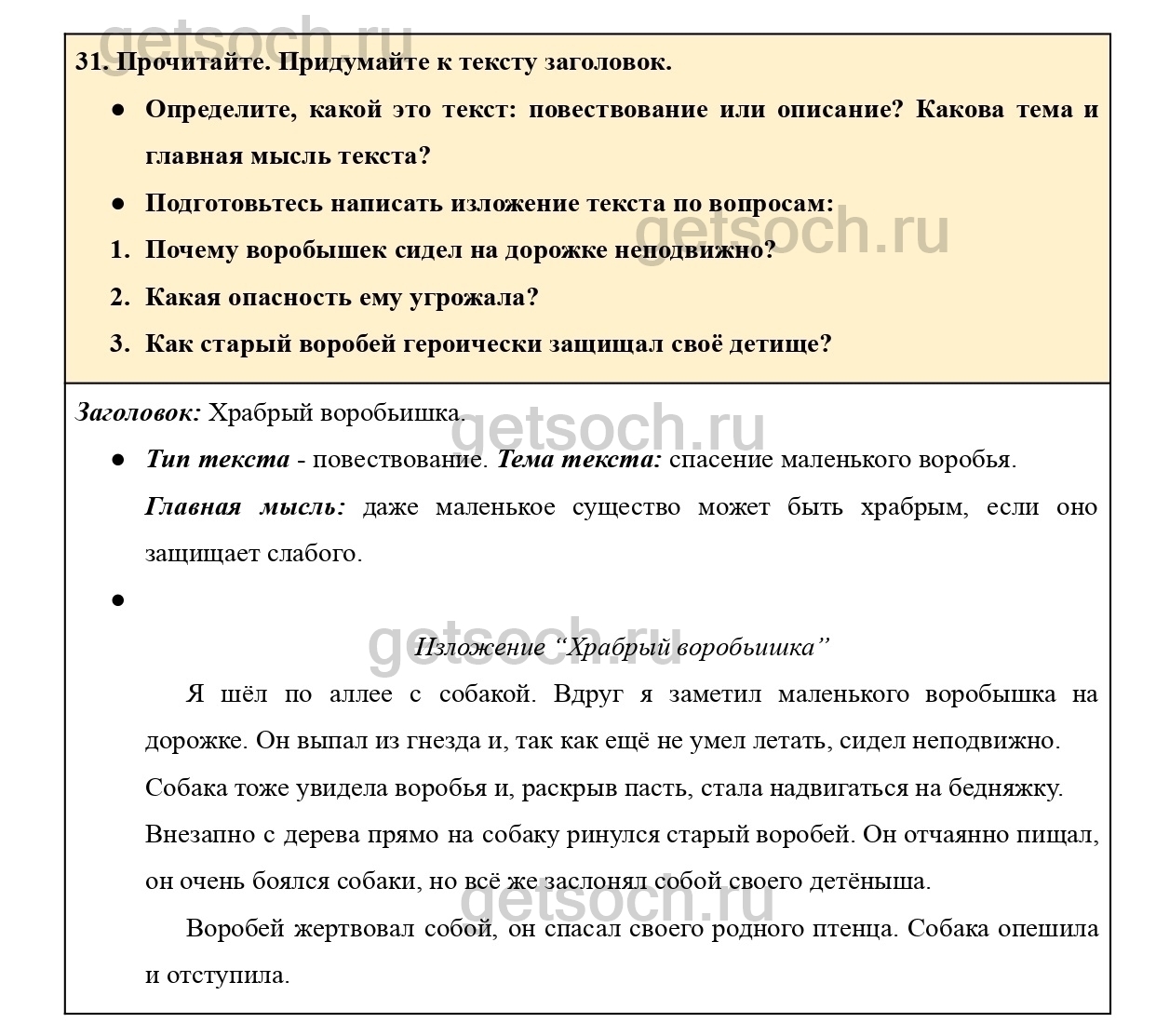 Рассмотрим ответы на Упражнение 31 из учебника по русскому языку для 4 класса Канакиной