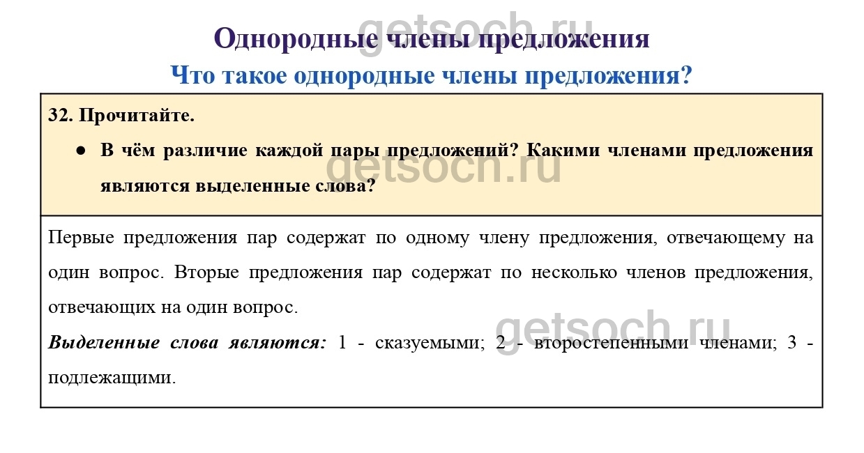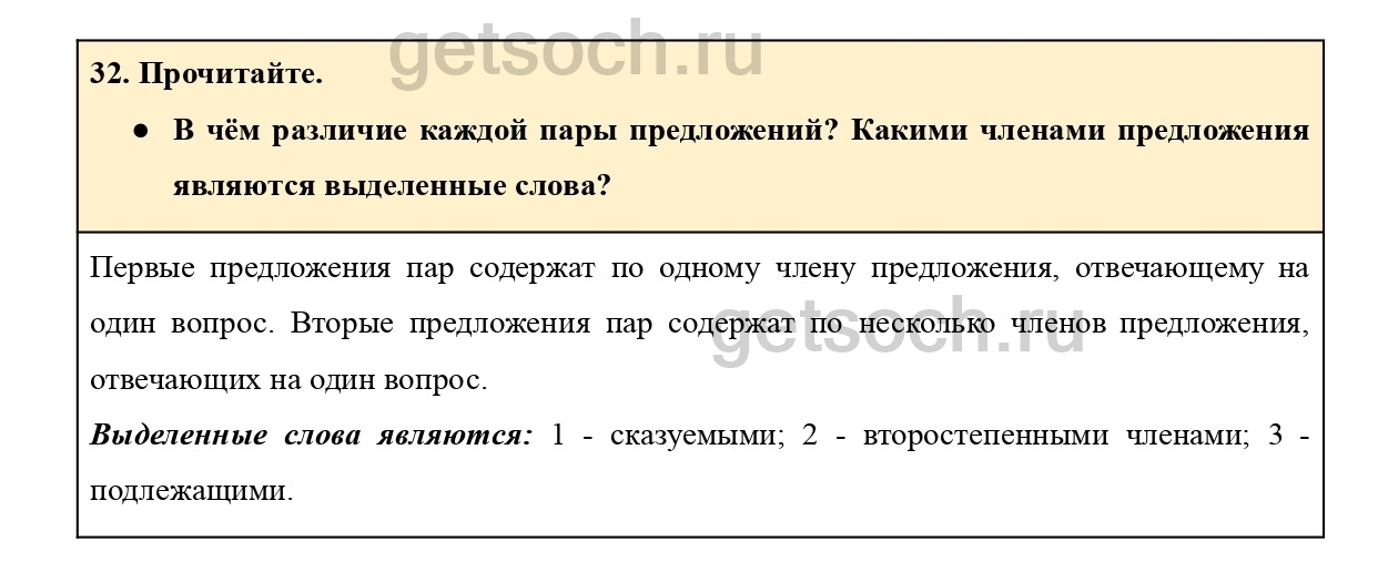 Рассмотрим ответы на Упражнение 32 из учебника по русскому языку для 4 класса Канакиной