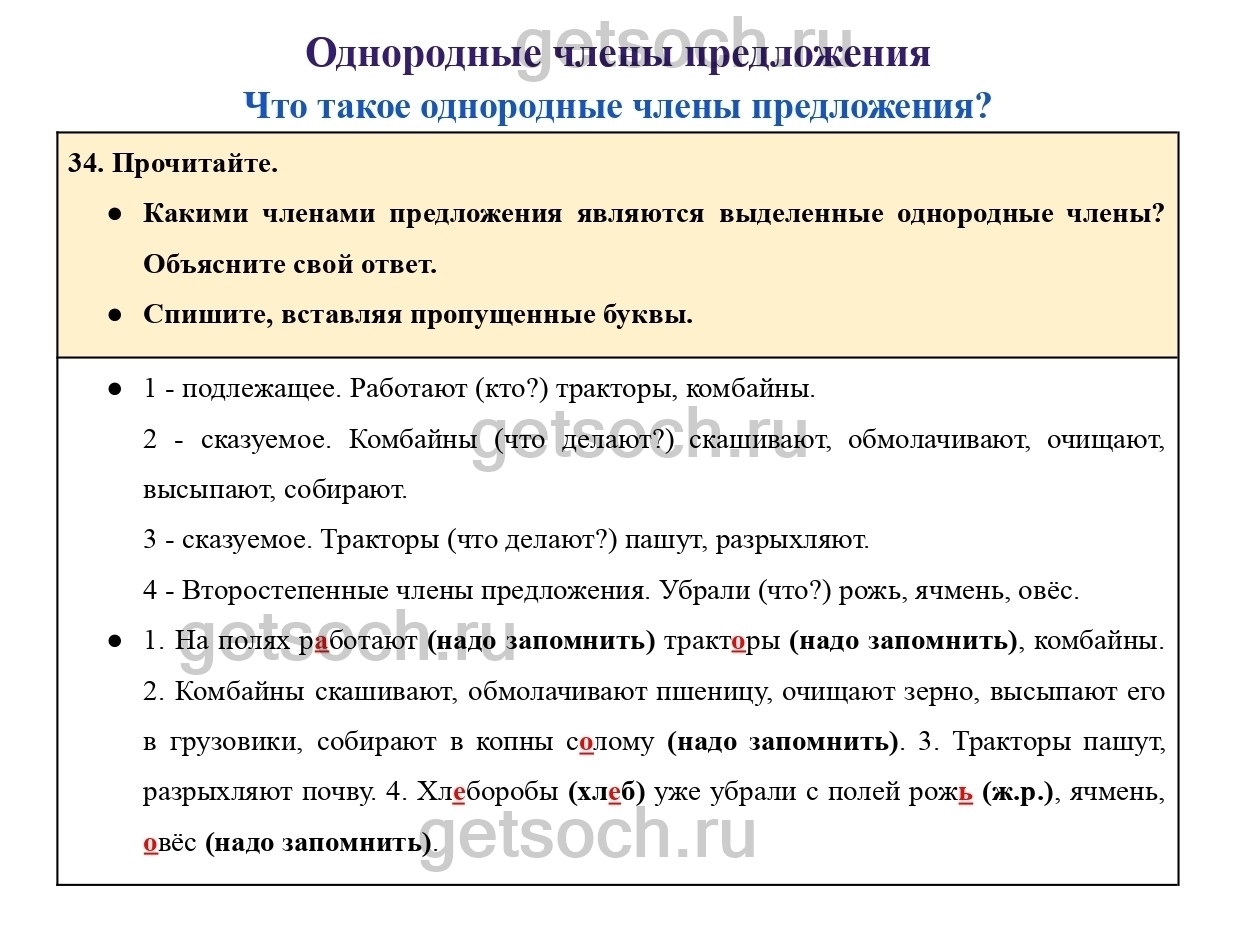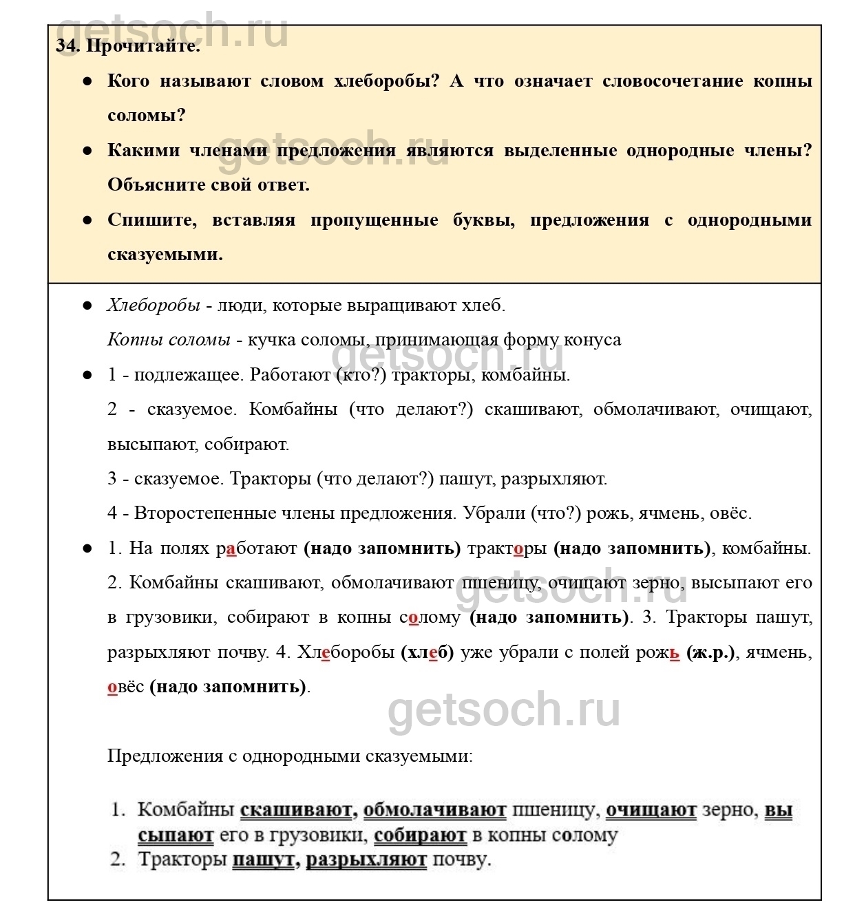 Рассмотрим ответы на Упражнение 34 из учебника по русскому языку для 4 класса Канакиной