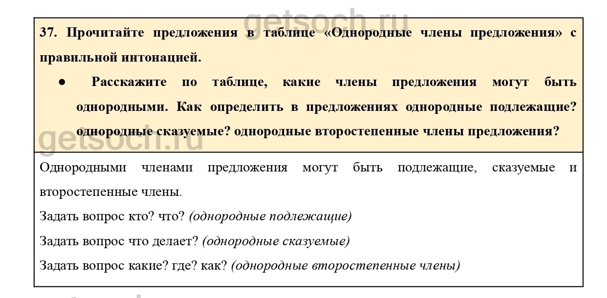 37. Прочитайте предложения в таблице «Однородные члены предложения» с правильной интонацией.