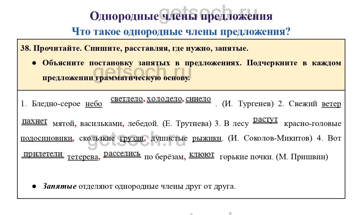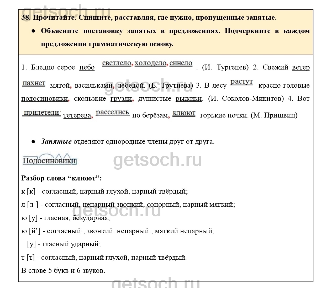 Рассмотрим ответы на Упражнение 38 из учебника по русскому языку для 4 класса Канакиной