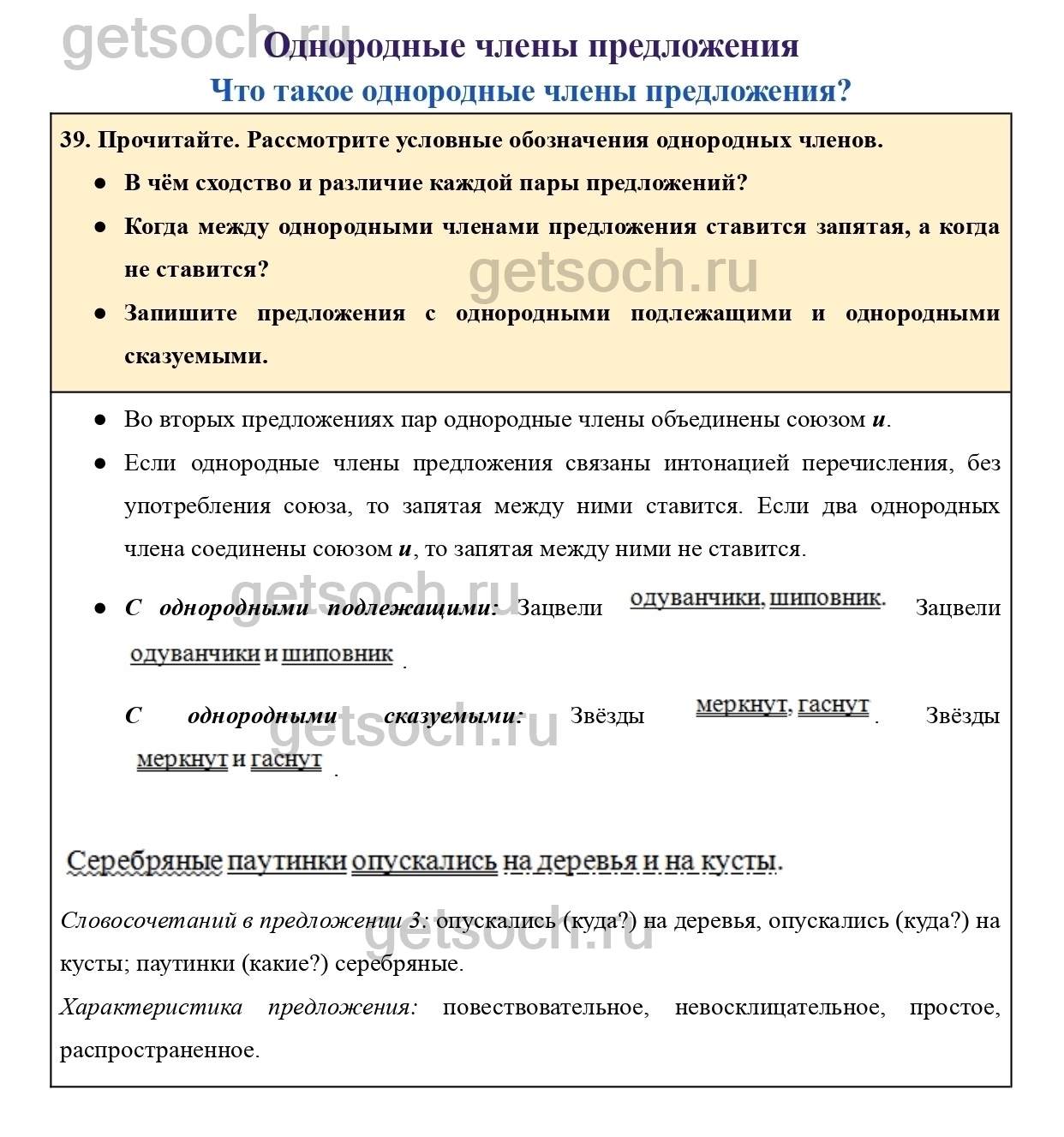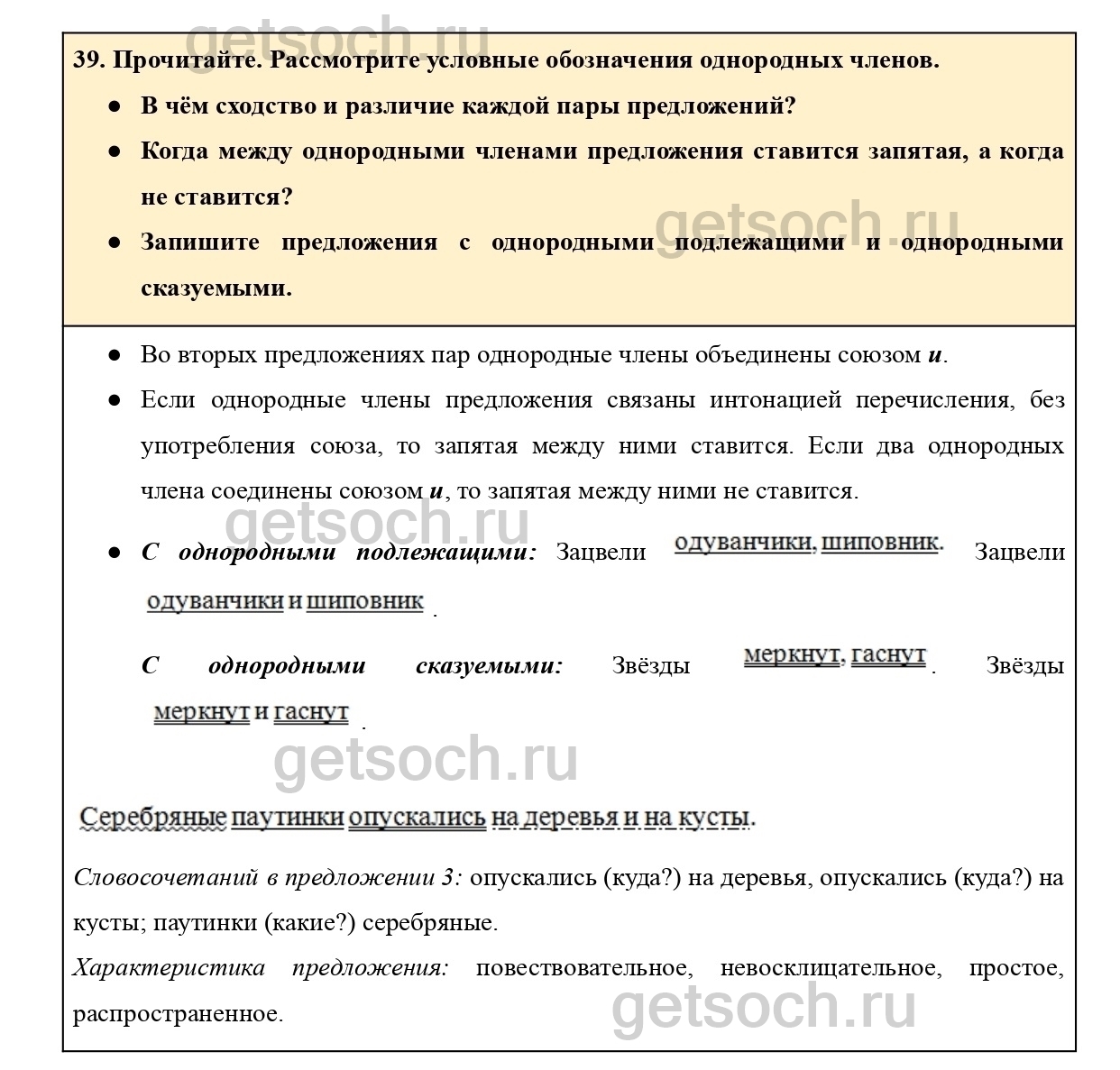 39. Прочитайте. Рассмотрите условные обозначения однородных членов.