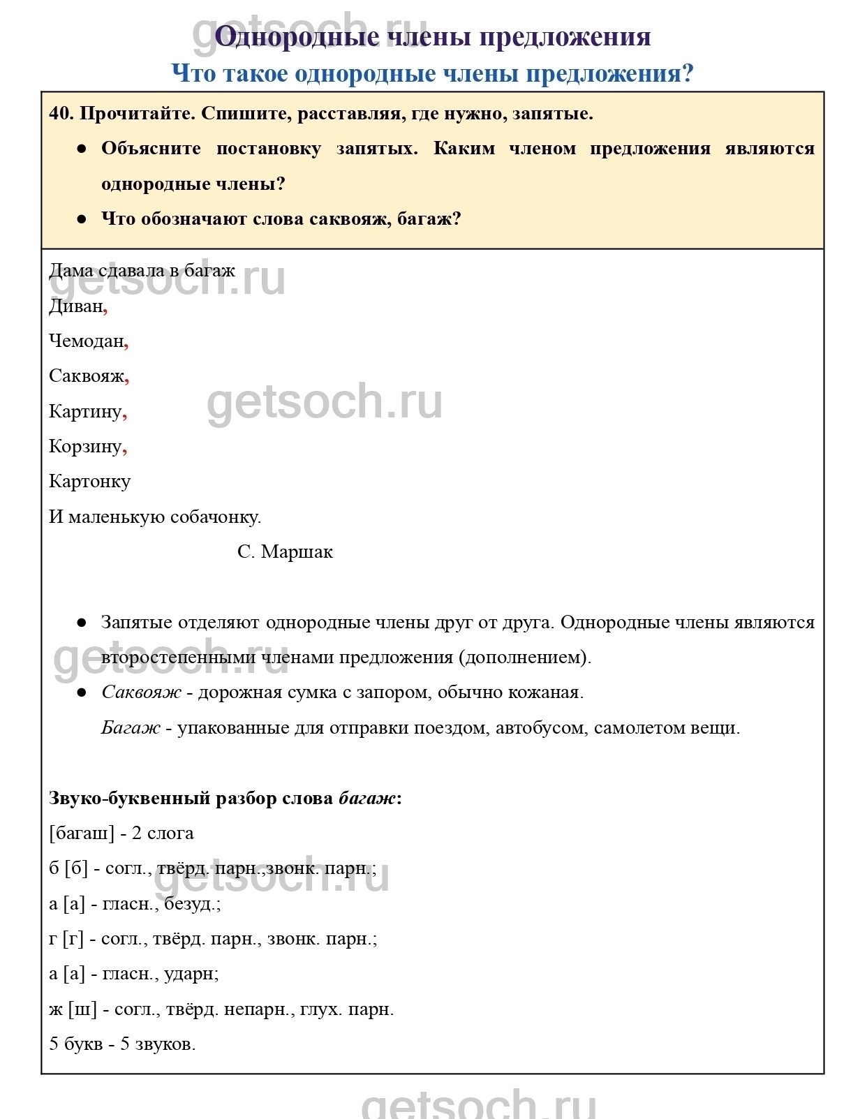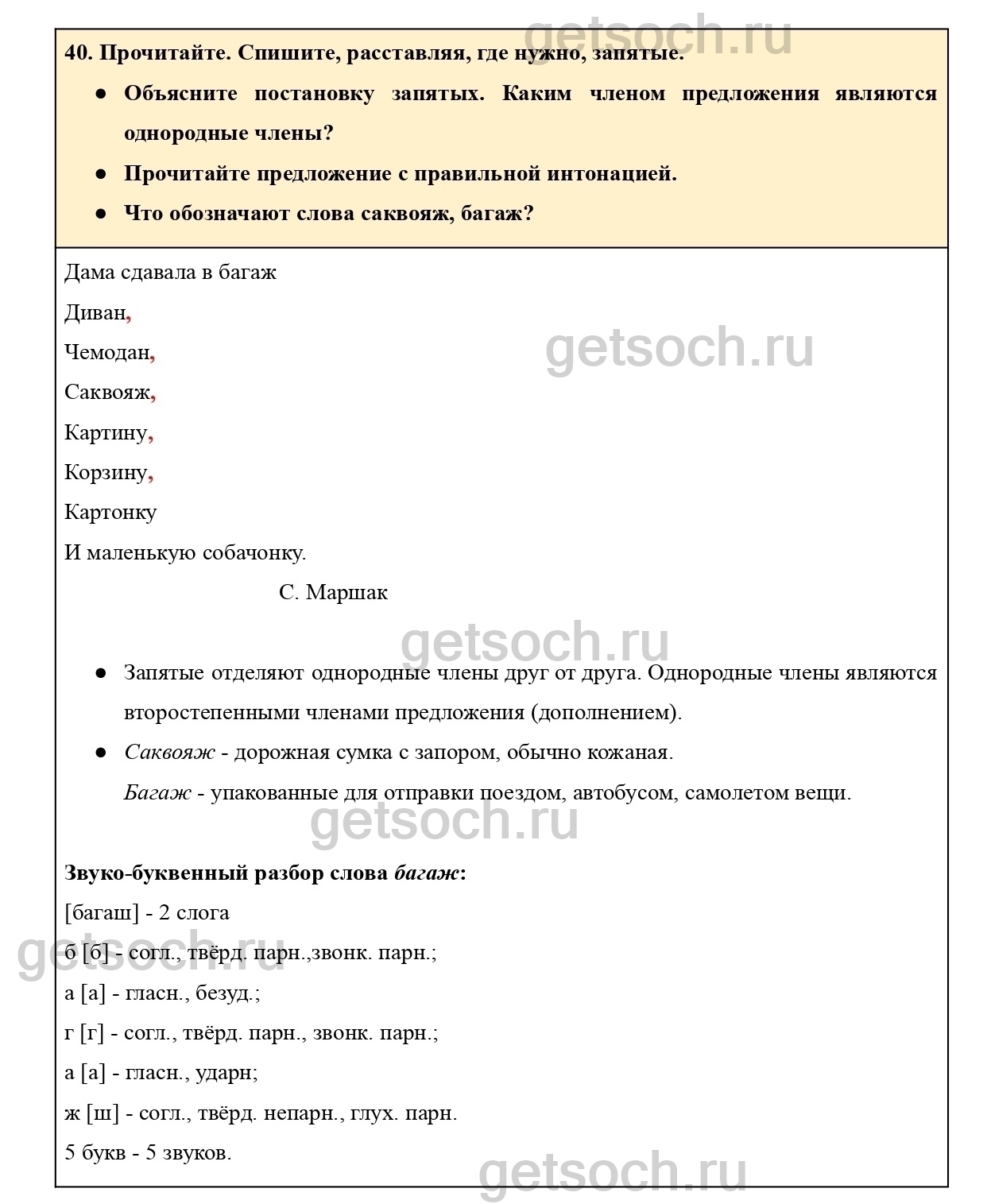 Рассмотрим ответы на Упражнение 40 из учебника по русскому языку для 4 класса Канакиной