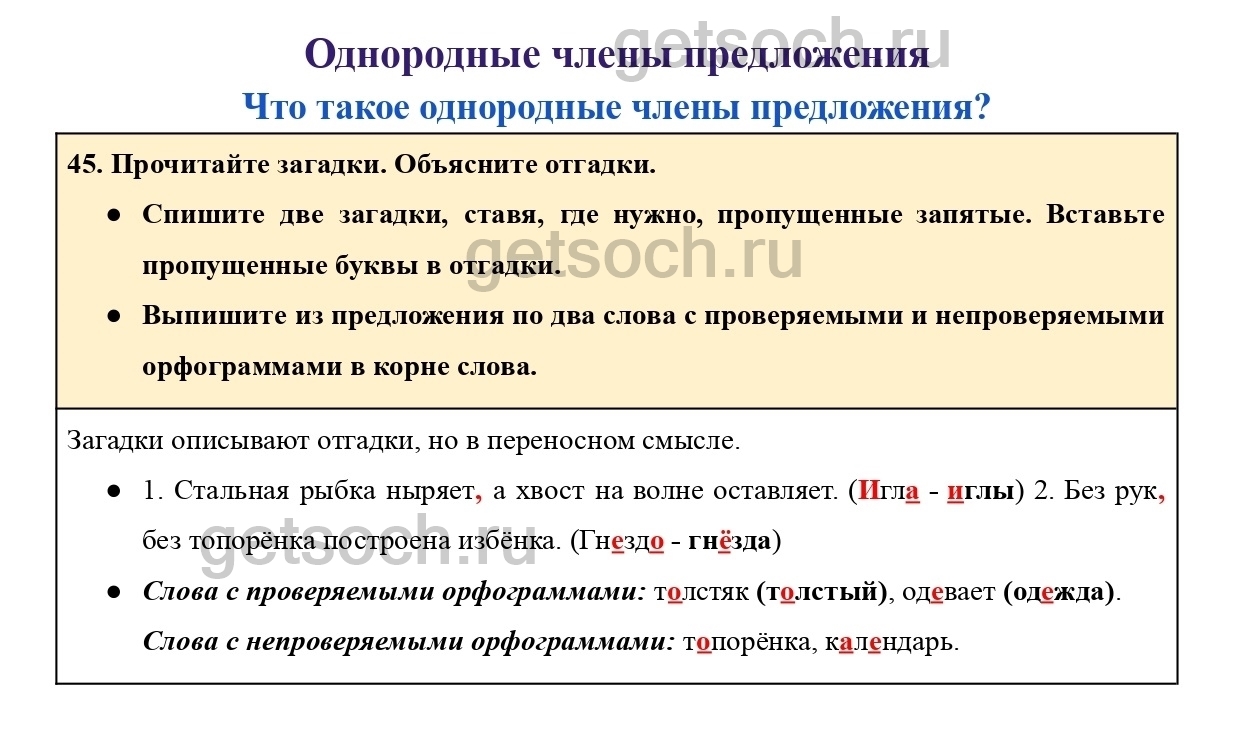 Рассмотрим ответы на Упражнение 45 из учебника по русскому языку для 4 класса Канакиной