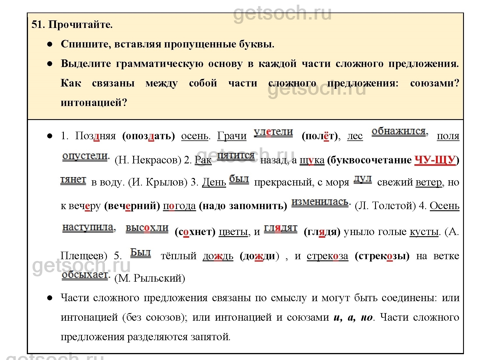 Рассмотрим ответы на Упражнение 51 из учебника по русскому языку для 4 класса Канакиной