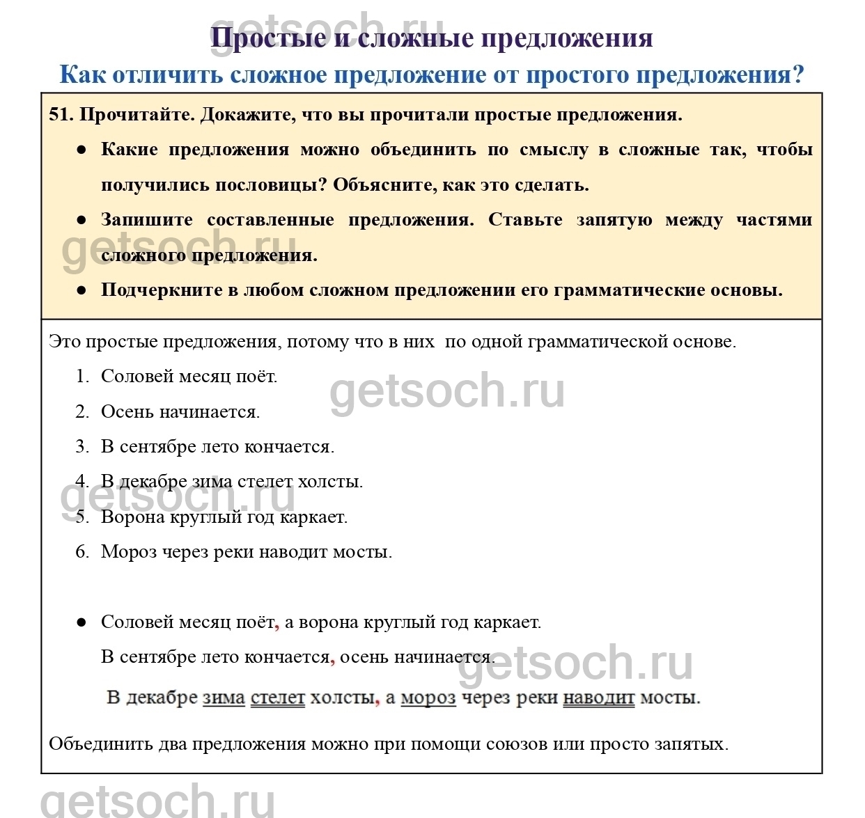 51. Прочитайте. Докажите, что вы прочитали простые предложения.