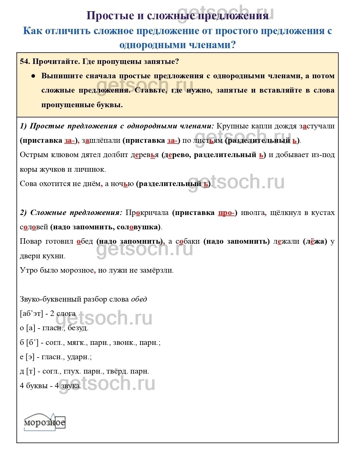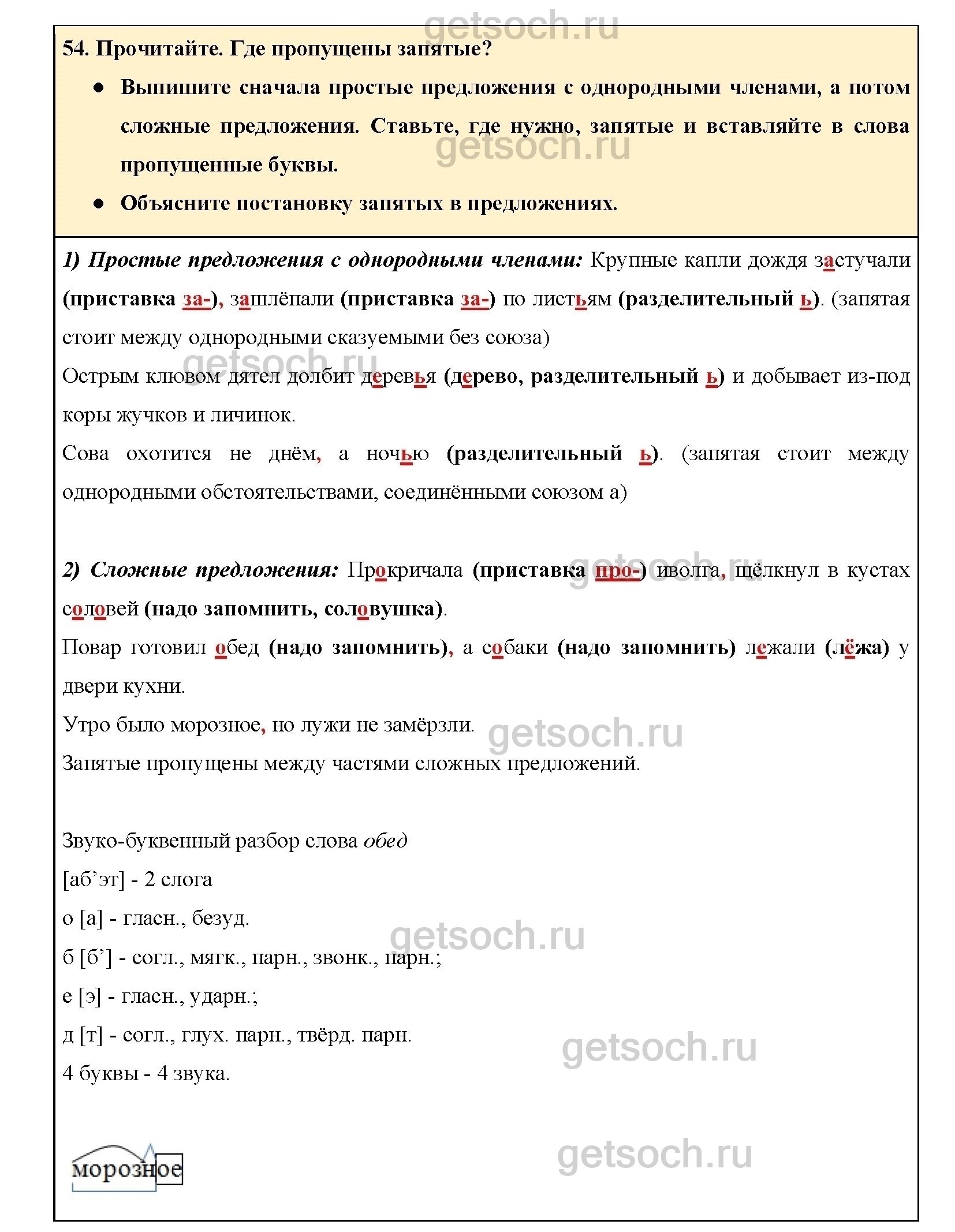 Рассмотрим ответы на Упражнение 54 из учебника по русскому языку для 4 класса Канакиной