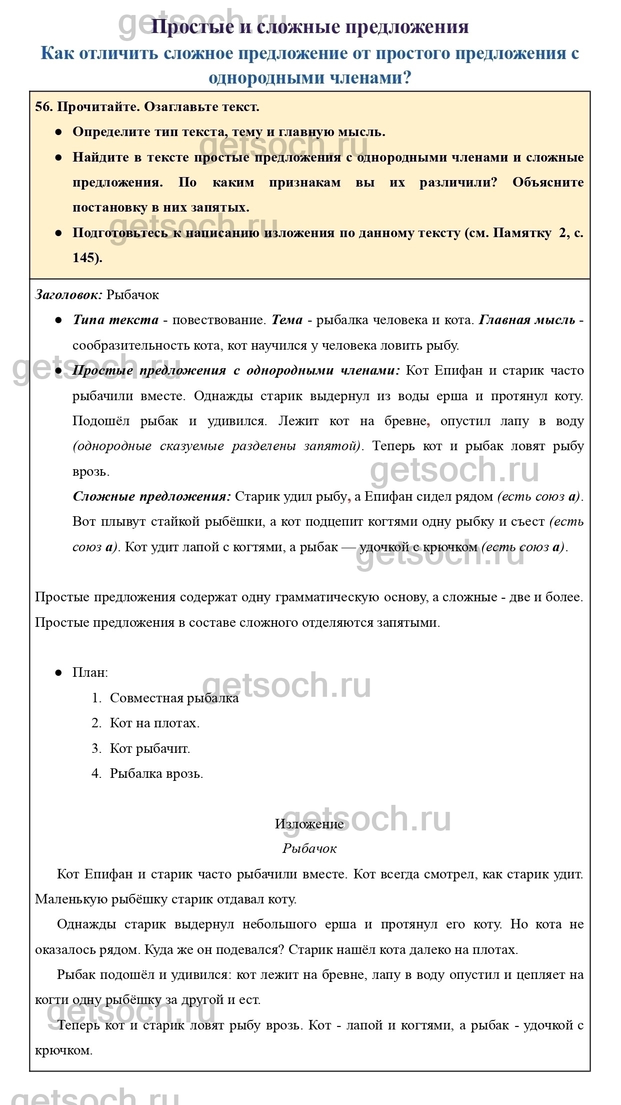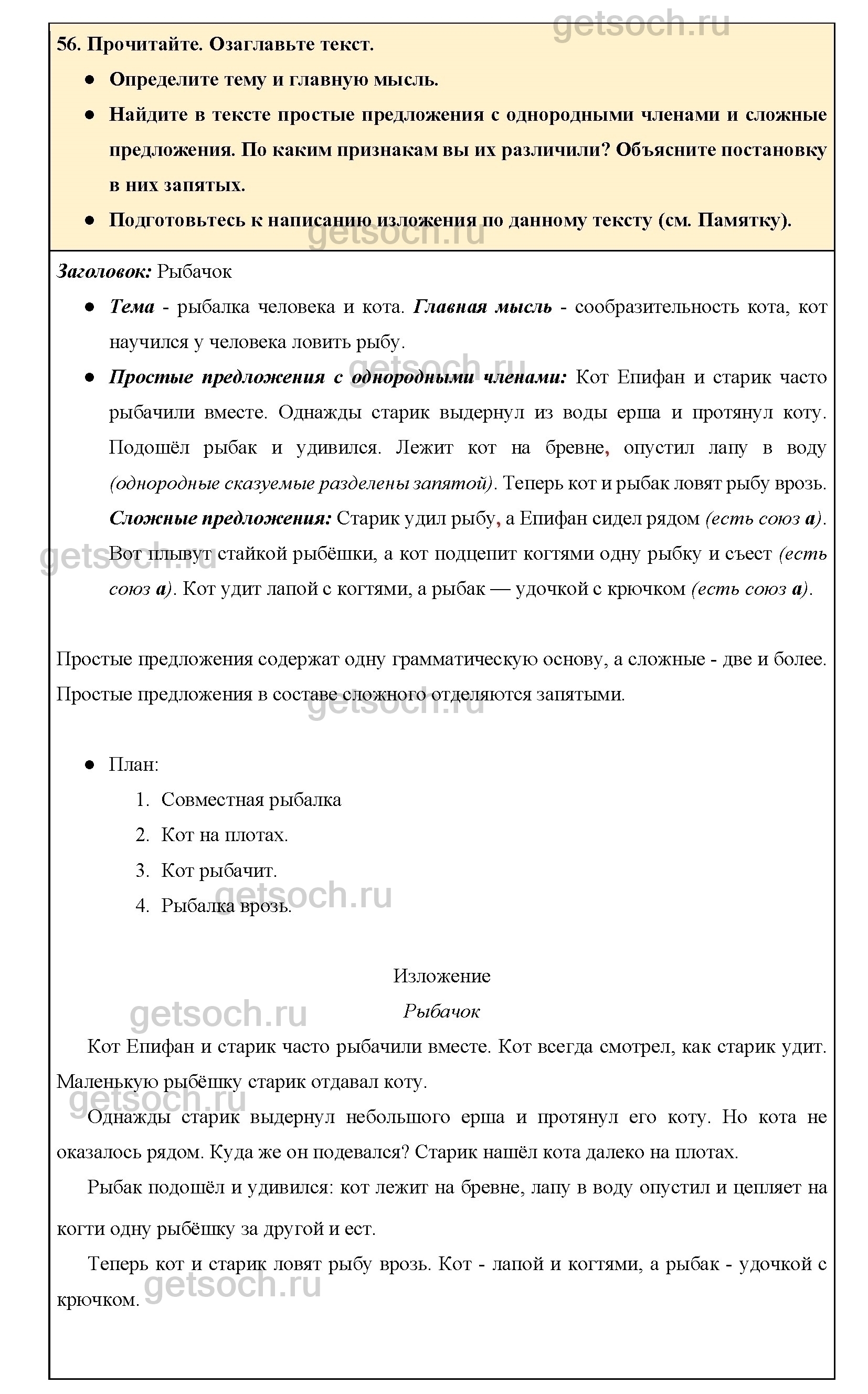 Рассмотрим ответы на Упражнение 56 из учебника по русскому языку для 4 класса Канакиной