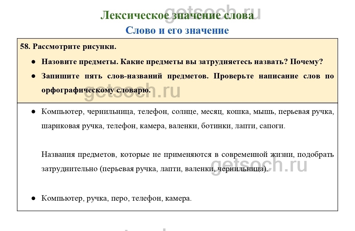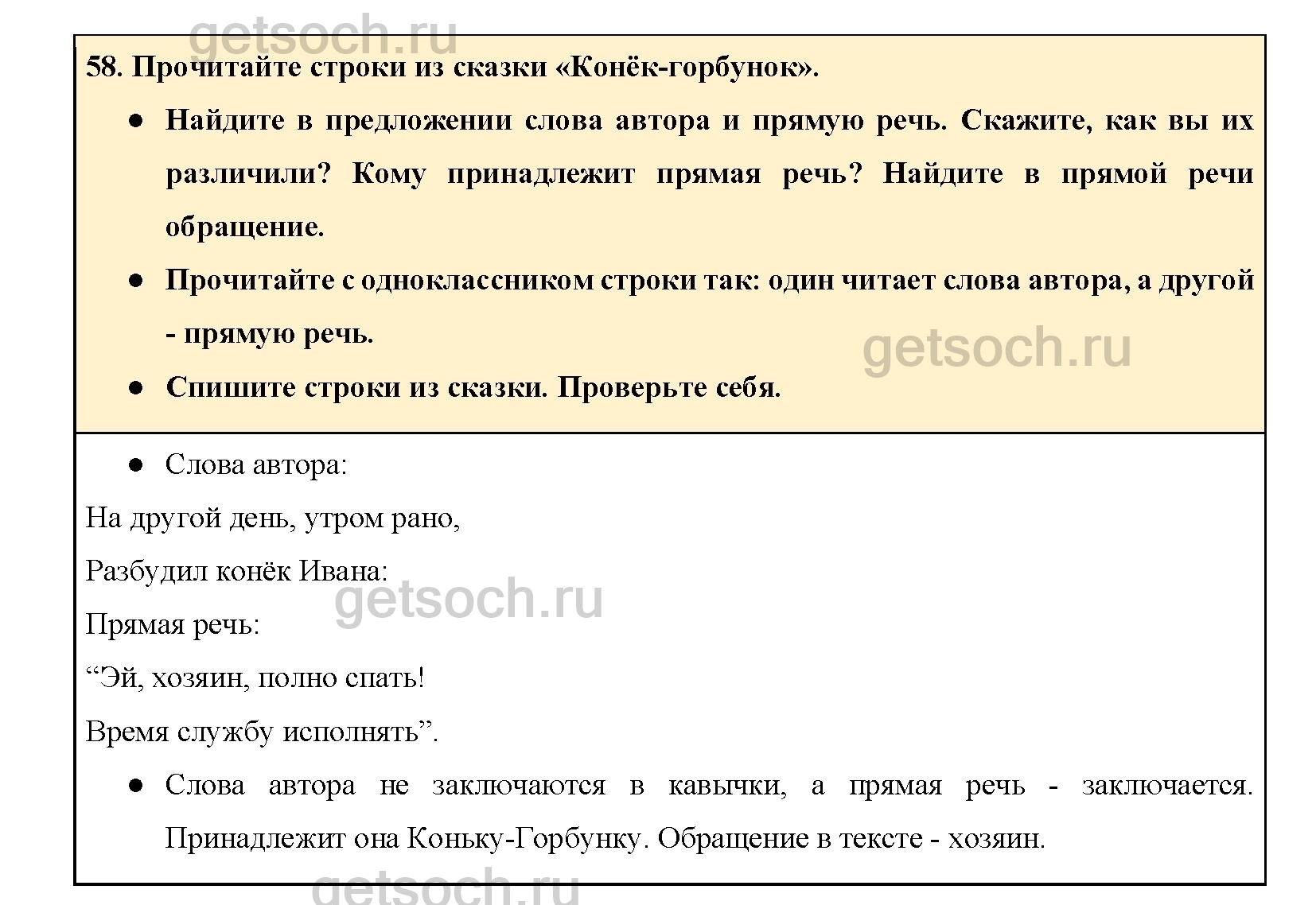 Рассмотрим ответы на Упражнение 58 из учебника по русскому языку для 4 класса Канакиной