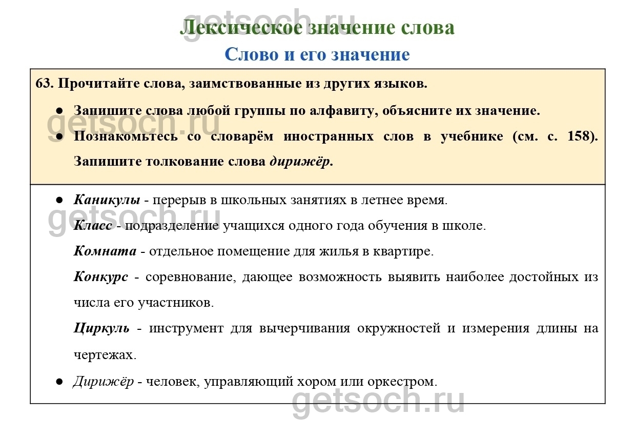 Познакомьтесь со словарём иностранных слов в учебнике (см. с. 158). Запишите толкование слова дирижёр.