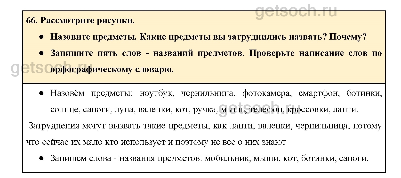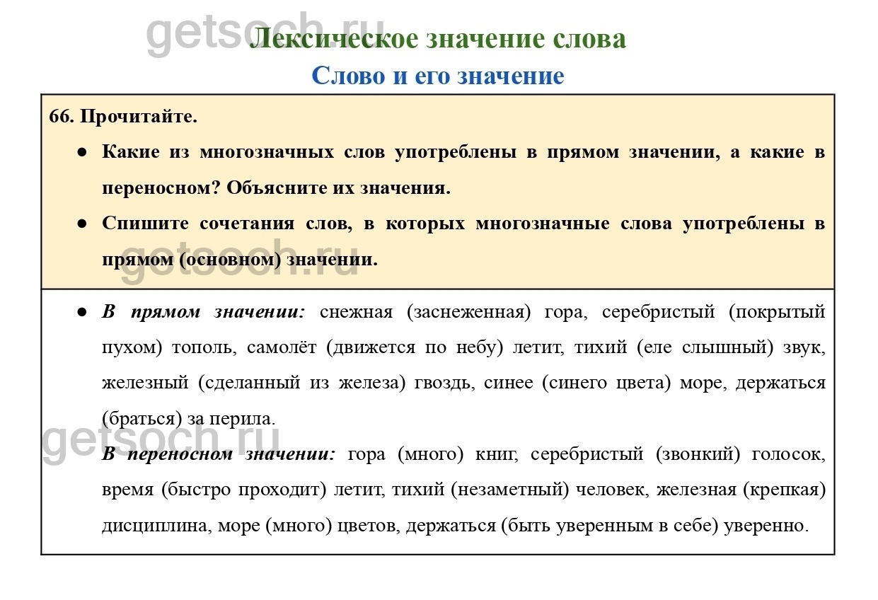 Рассмотрим ответы на Упражнение 66 из учебника по русскому языку для 4 класса Канакиной
