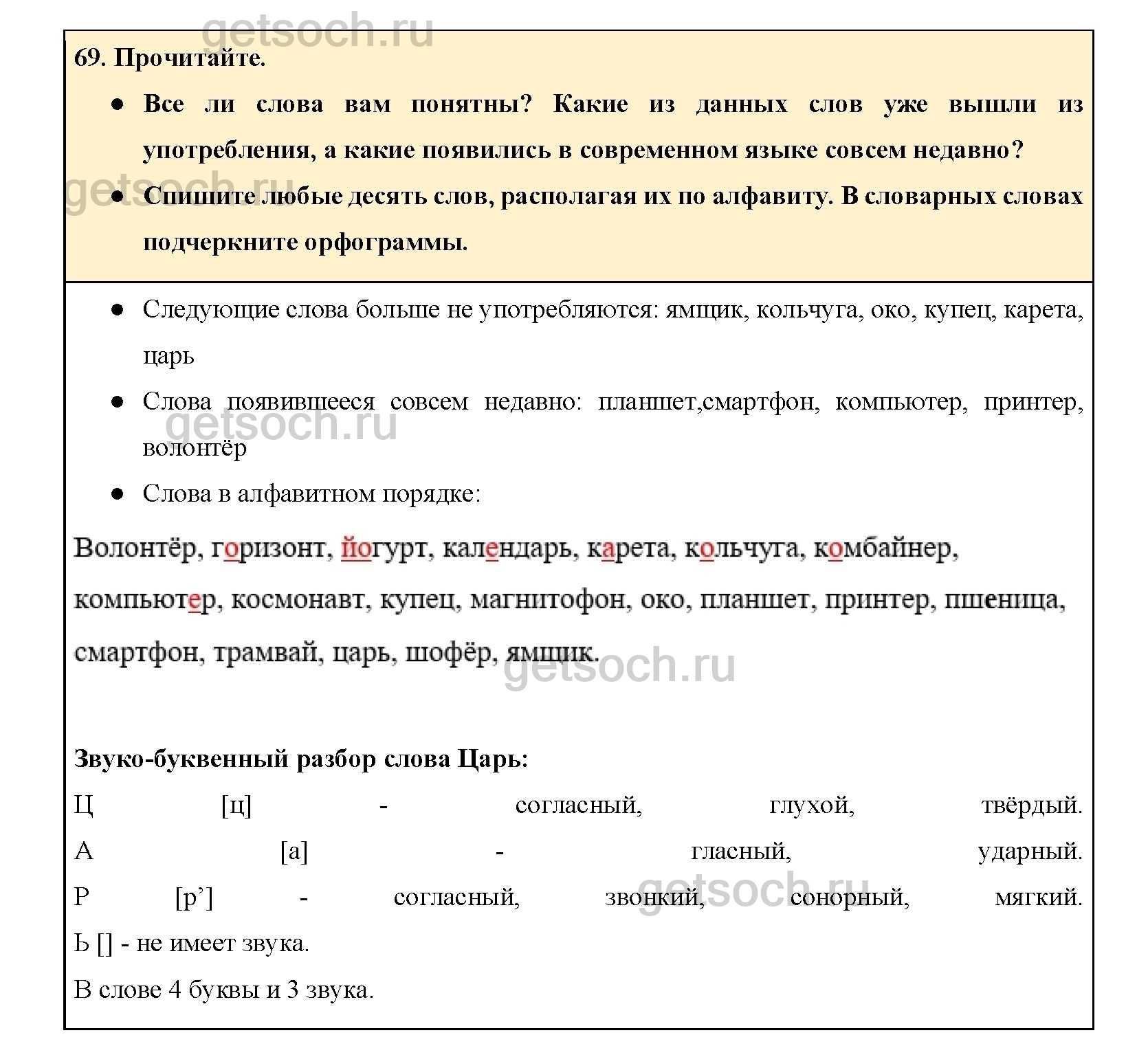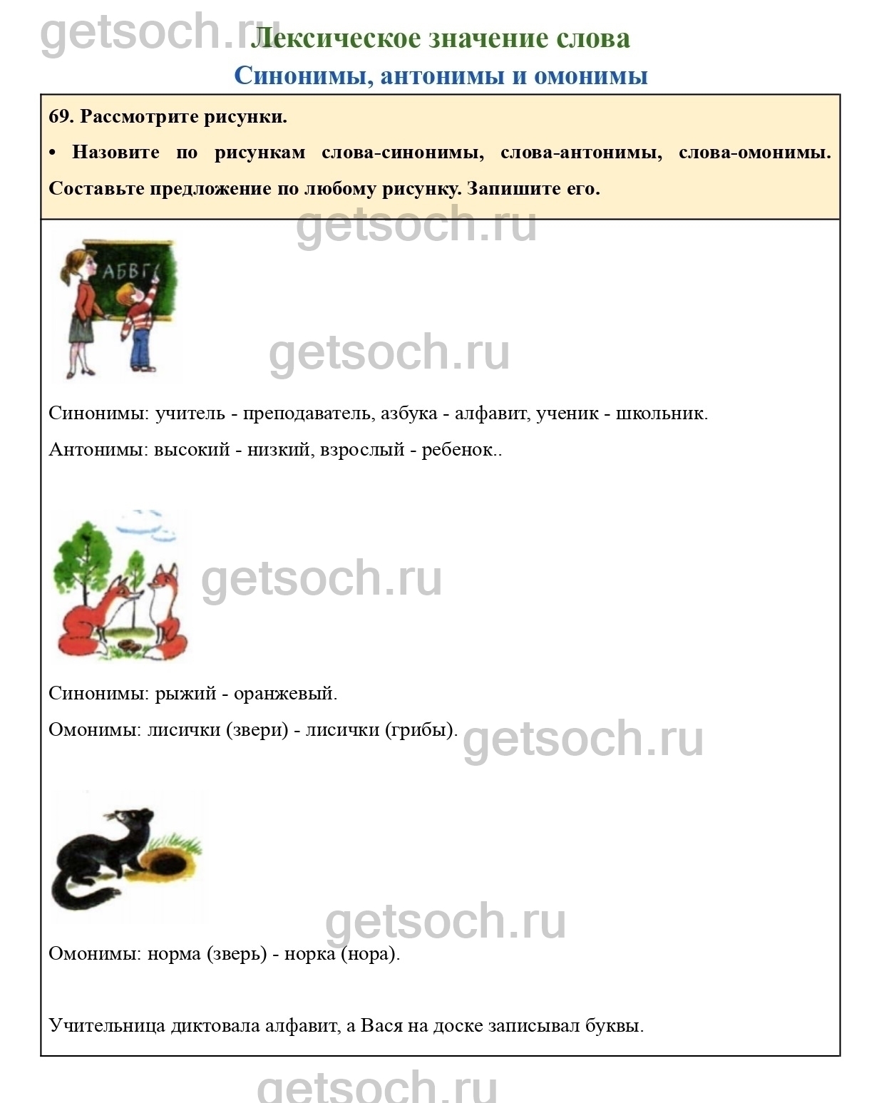 Рассмотрим ответы на Упражнение 69 из учебника по русскому языку для 4 класса Канакиной