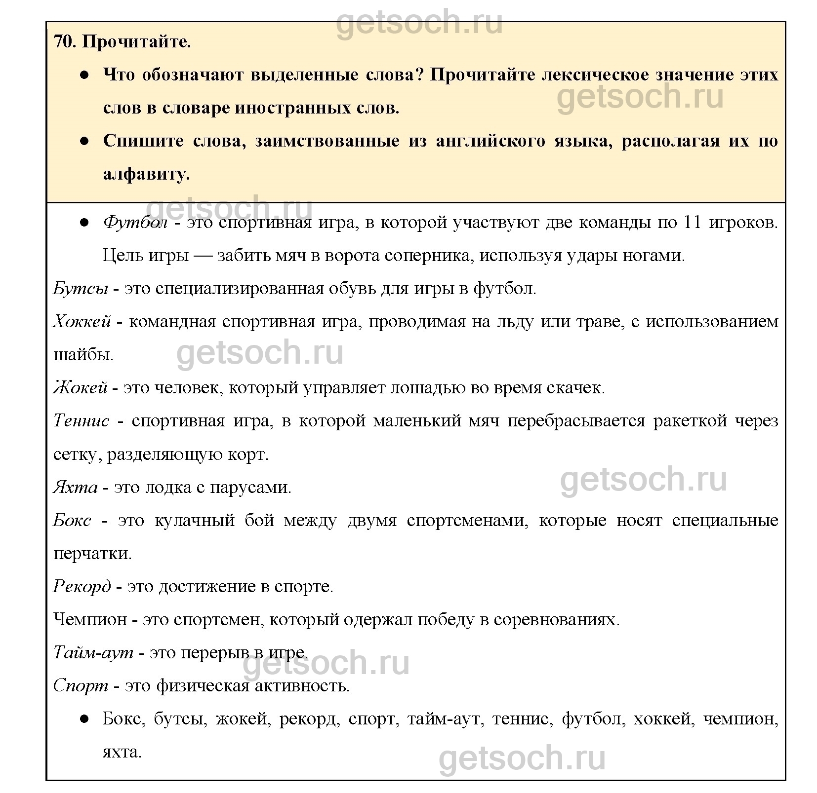 Рассмотрим ответы на Упражнение 70 из учебника по русскому языку для 4 класса Канакиной