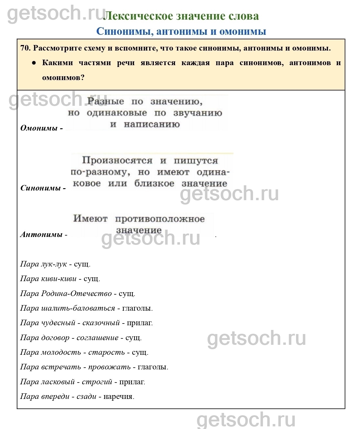 70. Рассмотрите схему и вспомните, что такое синонимы, антонимы и омонимы.