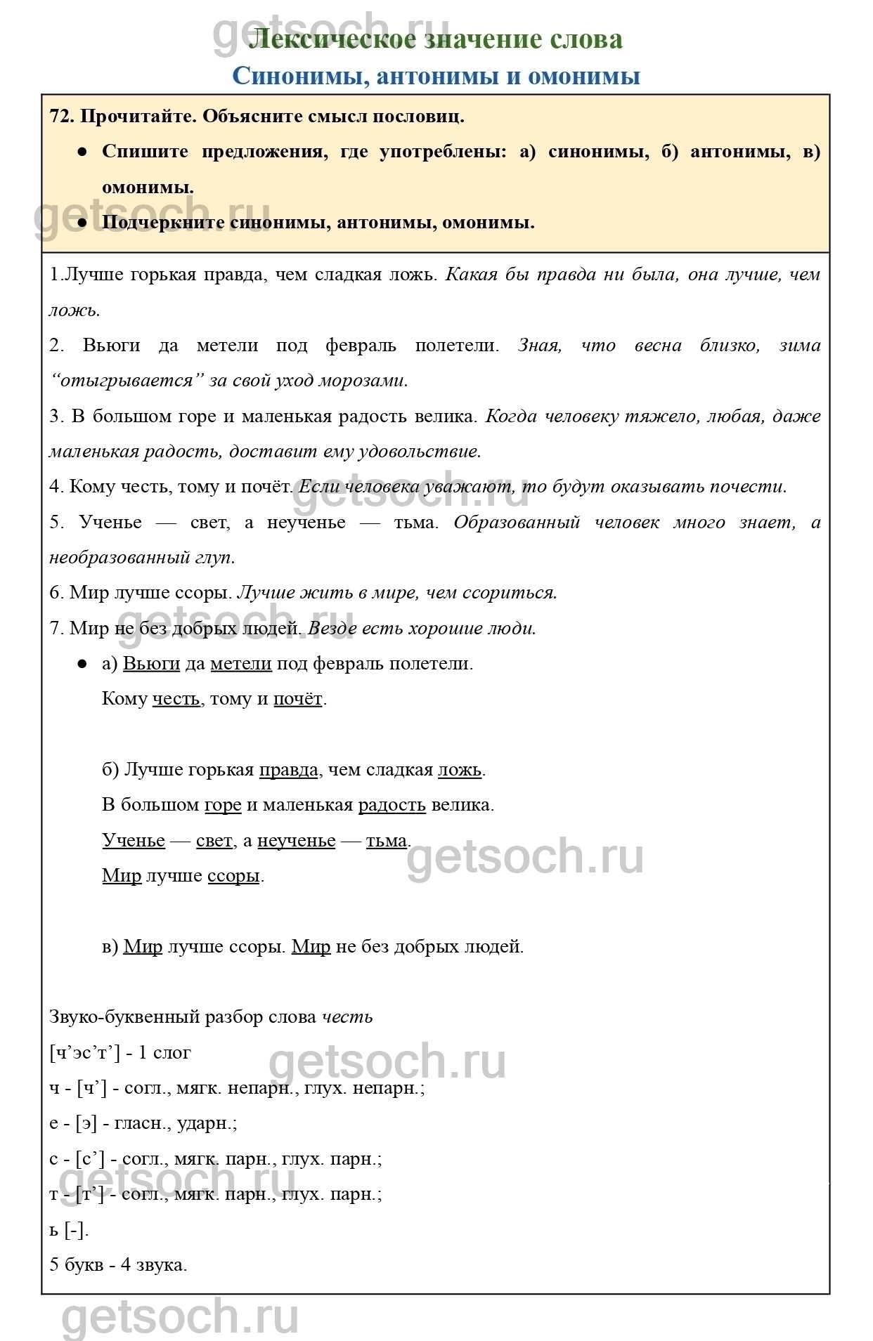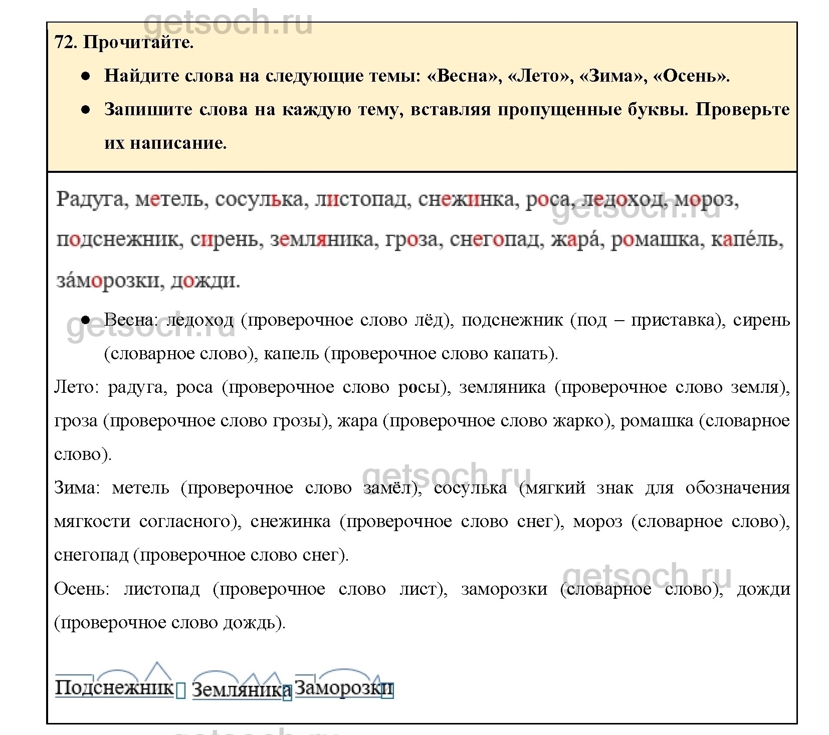 Рассмотрим ответы на Упражнение 72 из учебника по русскому языку для 4 класса Канакиной
