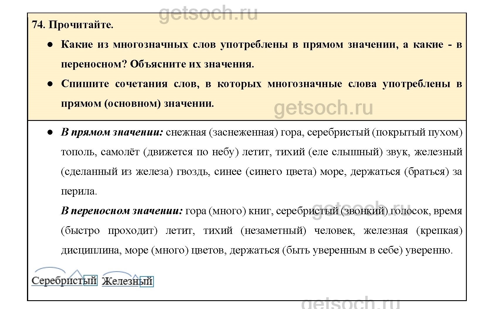 Рассмотрим ответы на Упражнение 74 из учебника по русскому языку для 4 класса Канакиной