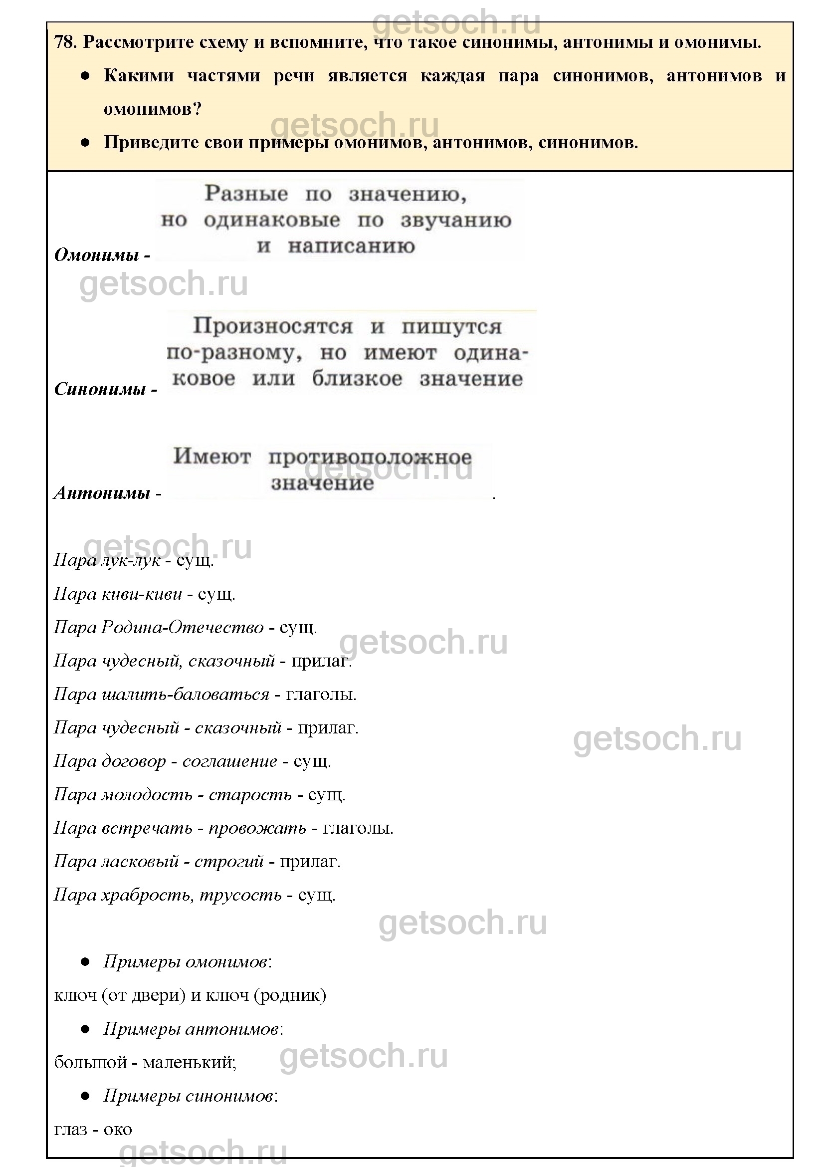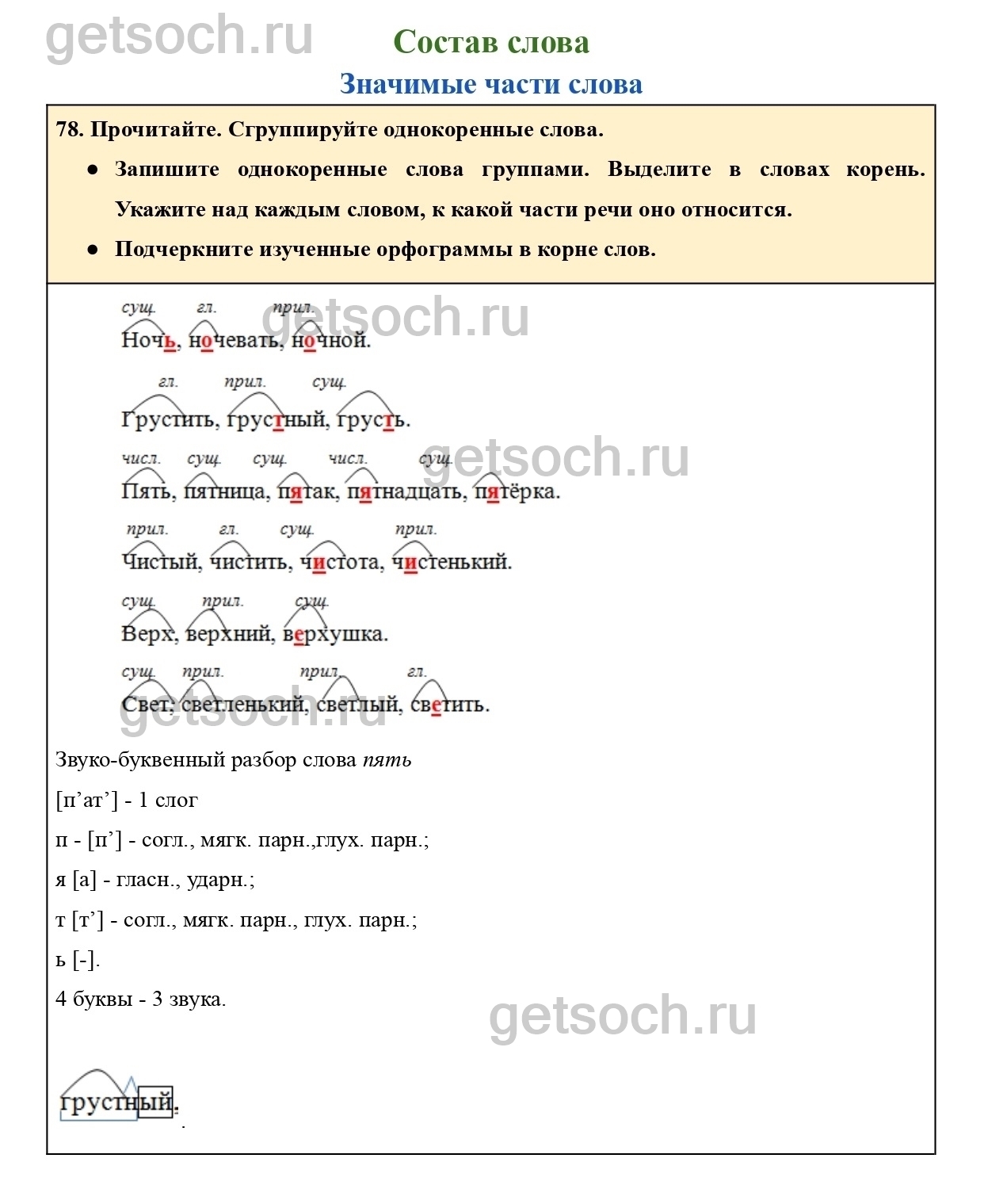 Рассмотрим ответы на Упражнение 78 из учебника по русскому языку для 4 класса Канакиной