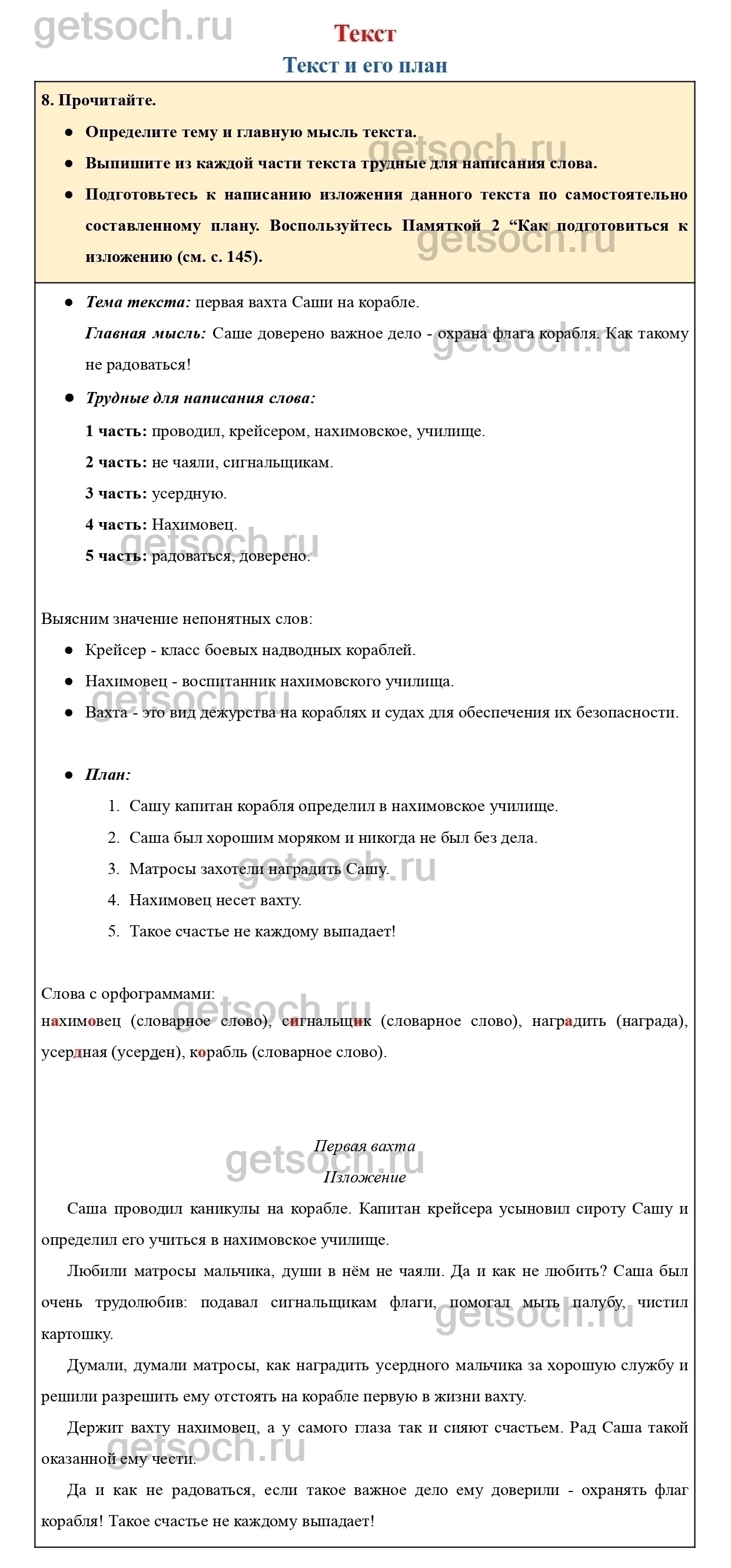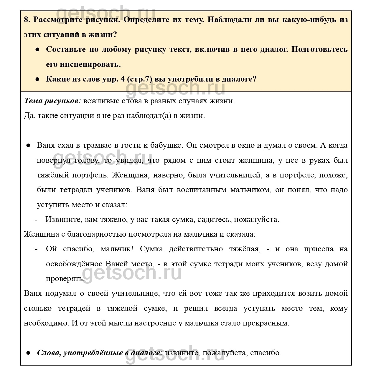 Рассмотрим ответы на Упражнение 8 из учебника по русскому языку для 4 класса Канакиной