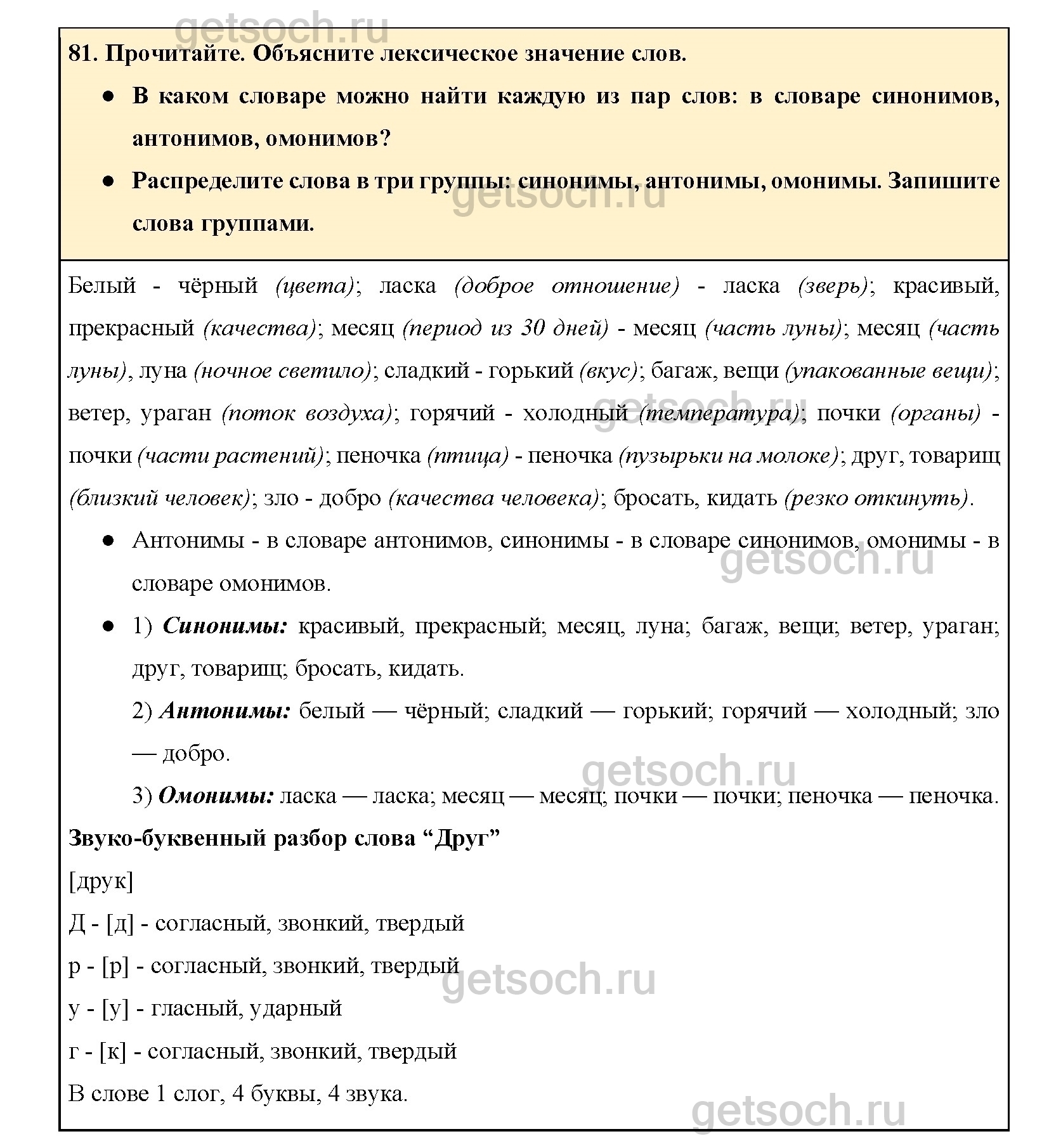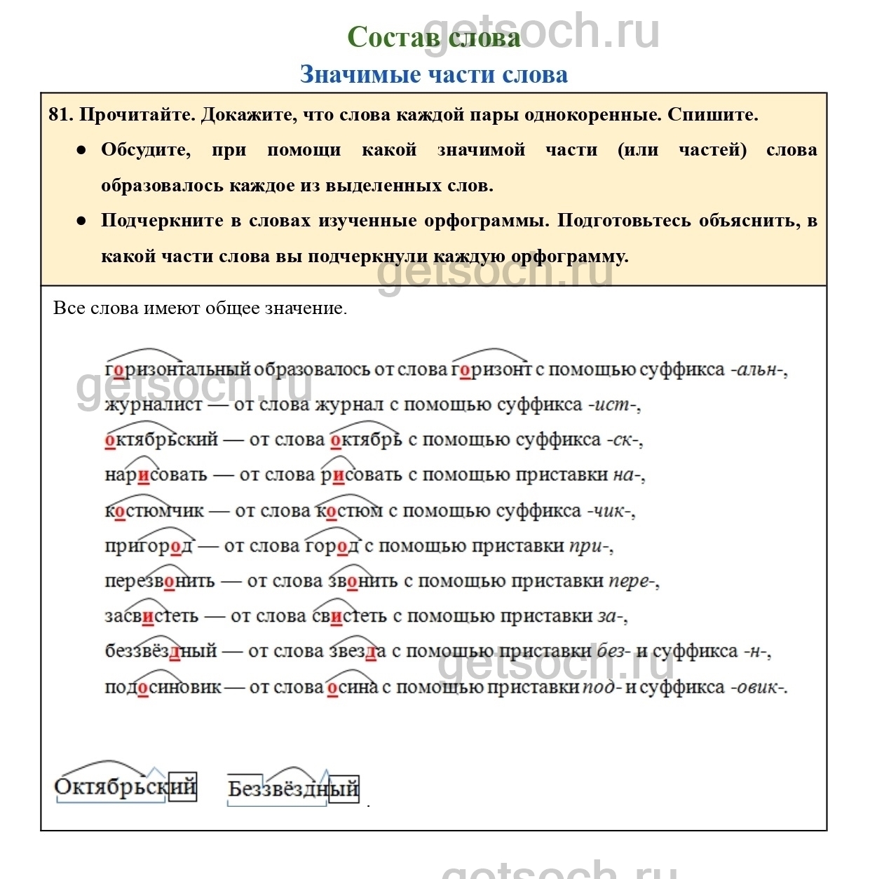 Рассмотрим ответы на Упражнение 81 из учебника по русскому языку для 4 класса Канакиной