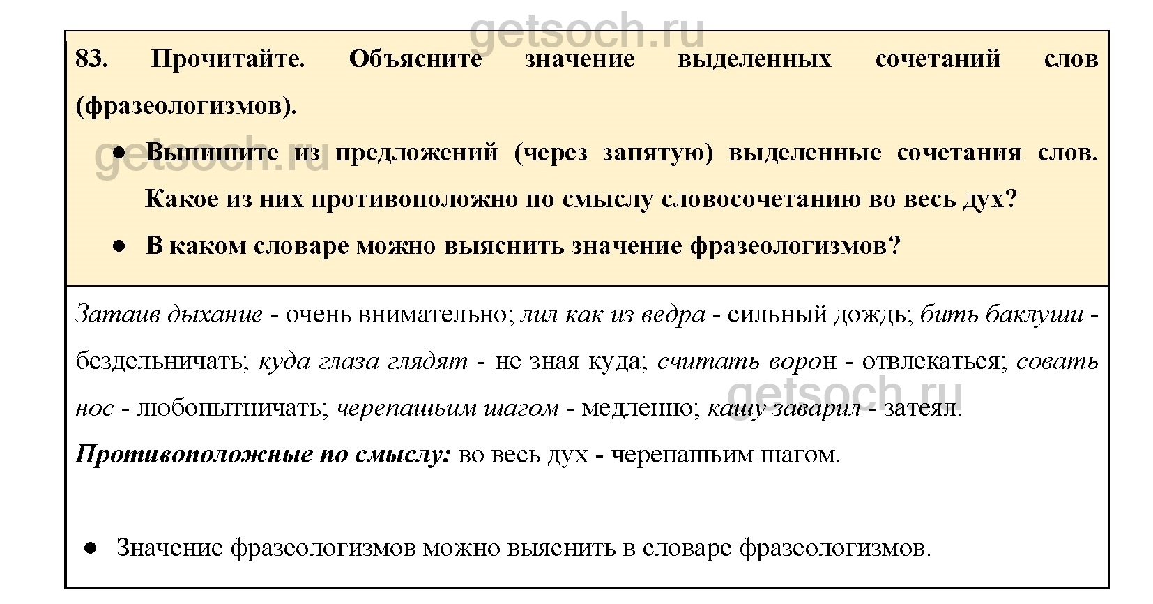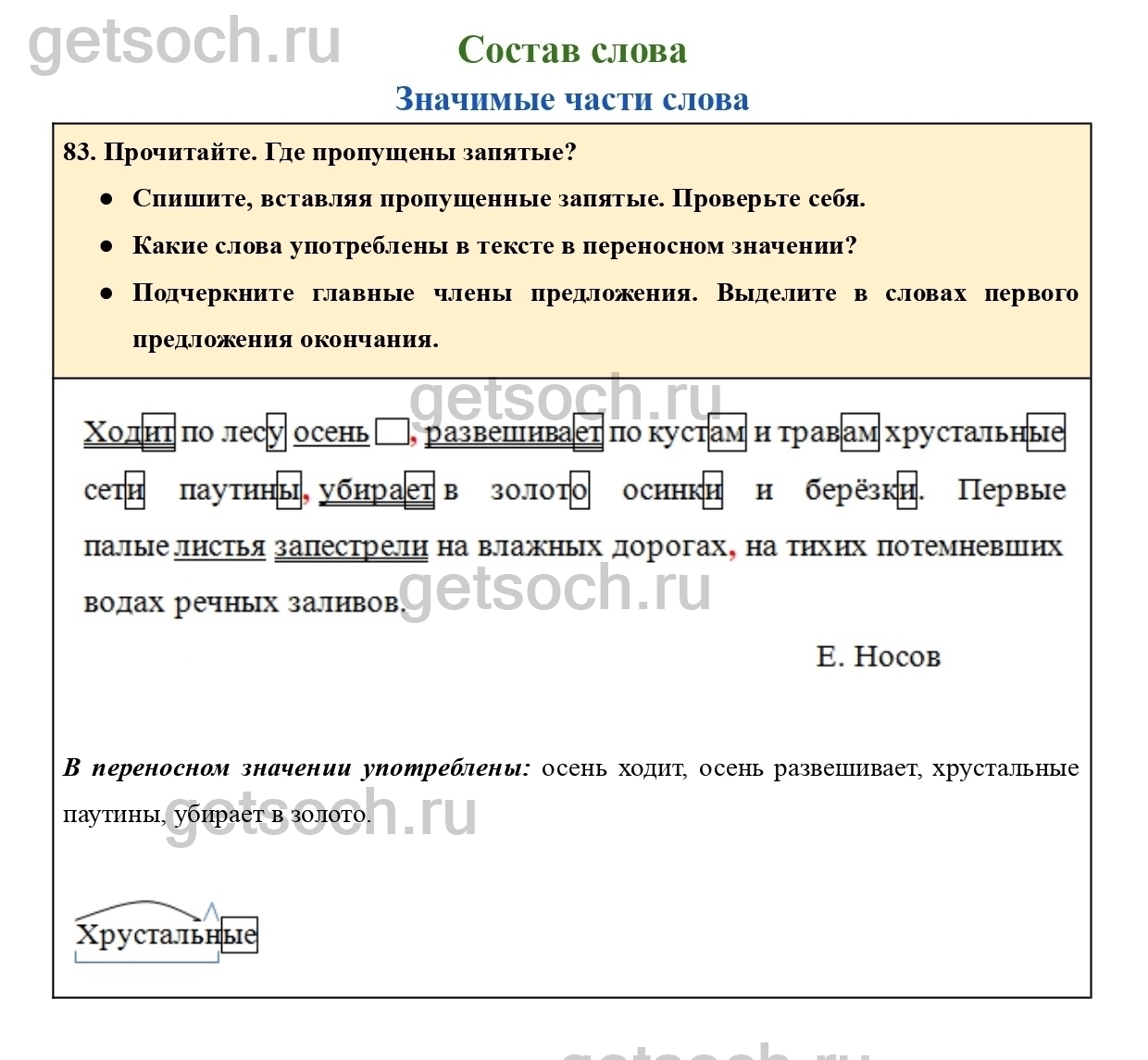 Рассмотрим ответы на Упражнение 83 из учебника по русскому языку для 4 класса Канакиной